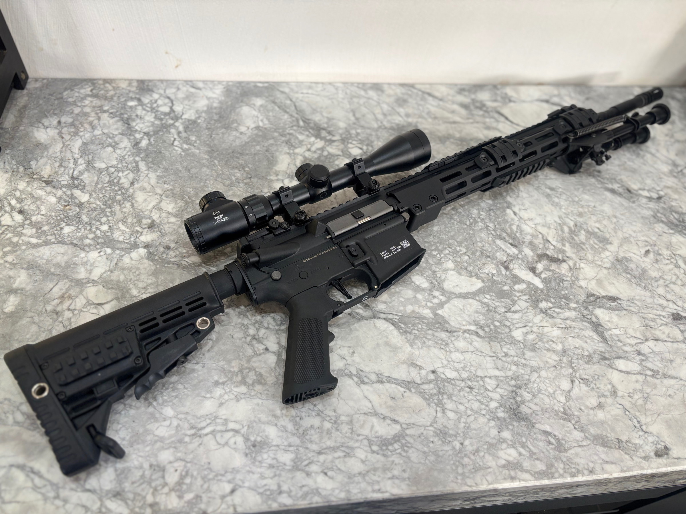 Het gaat hier om een nieuwe replica van Specna Arms. Uit de doos, en direct aangepakt en aangepast voor gebruik als DMR. Alle hierbij gebruikte onderdelen zijn ook nieuw.