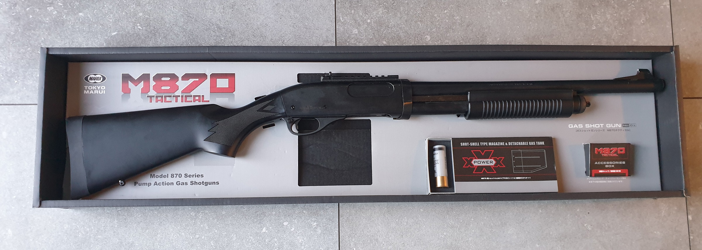 de allernieuwste Tokyo Marui M870 gas aangedreven shell-gebaseerde shotgun. Dankzij de innovatieve technologieën van Tokyo Marui schiet deze shotgun 3 tot 6 BB's per keer.