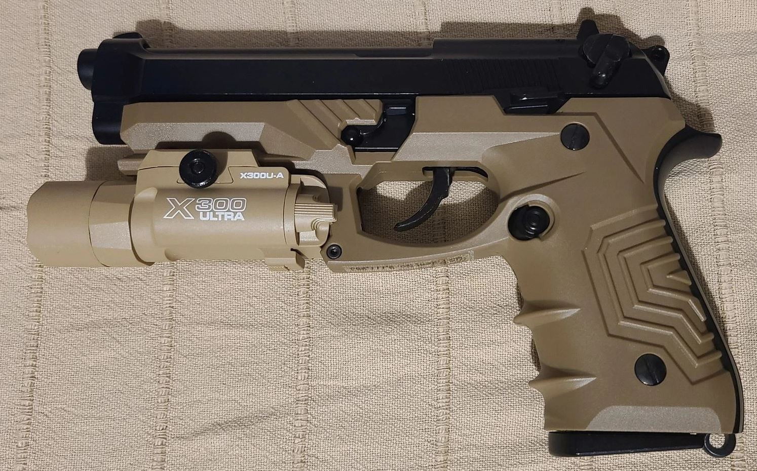 M9 GripTac Airsoftpistole Vollmetall GBB coyote inkl.