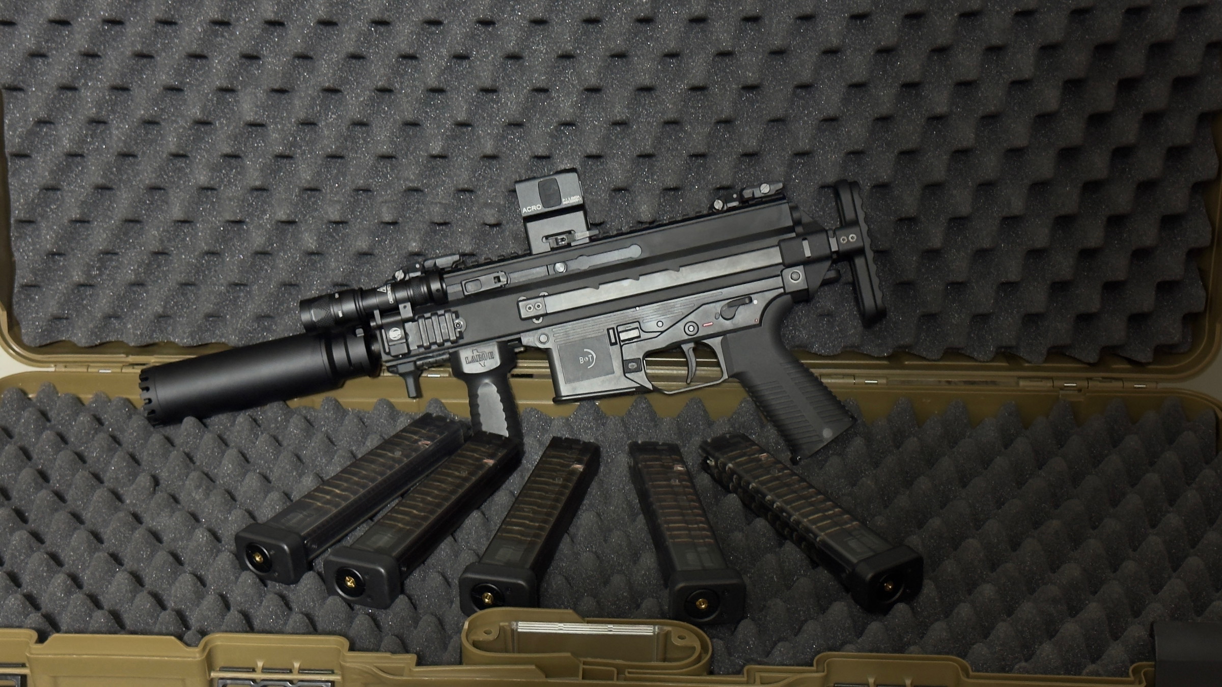 Comes with five 45-bb magazines + 3-lug quick-detach suppressor with B&T logos + NPAS CL Precision.