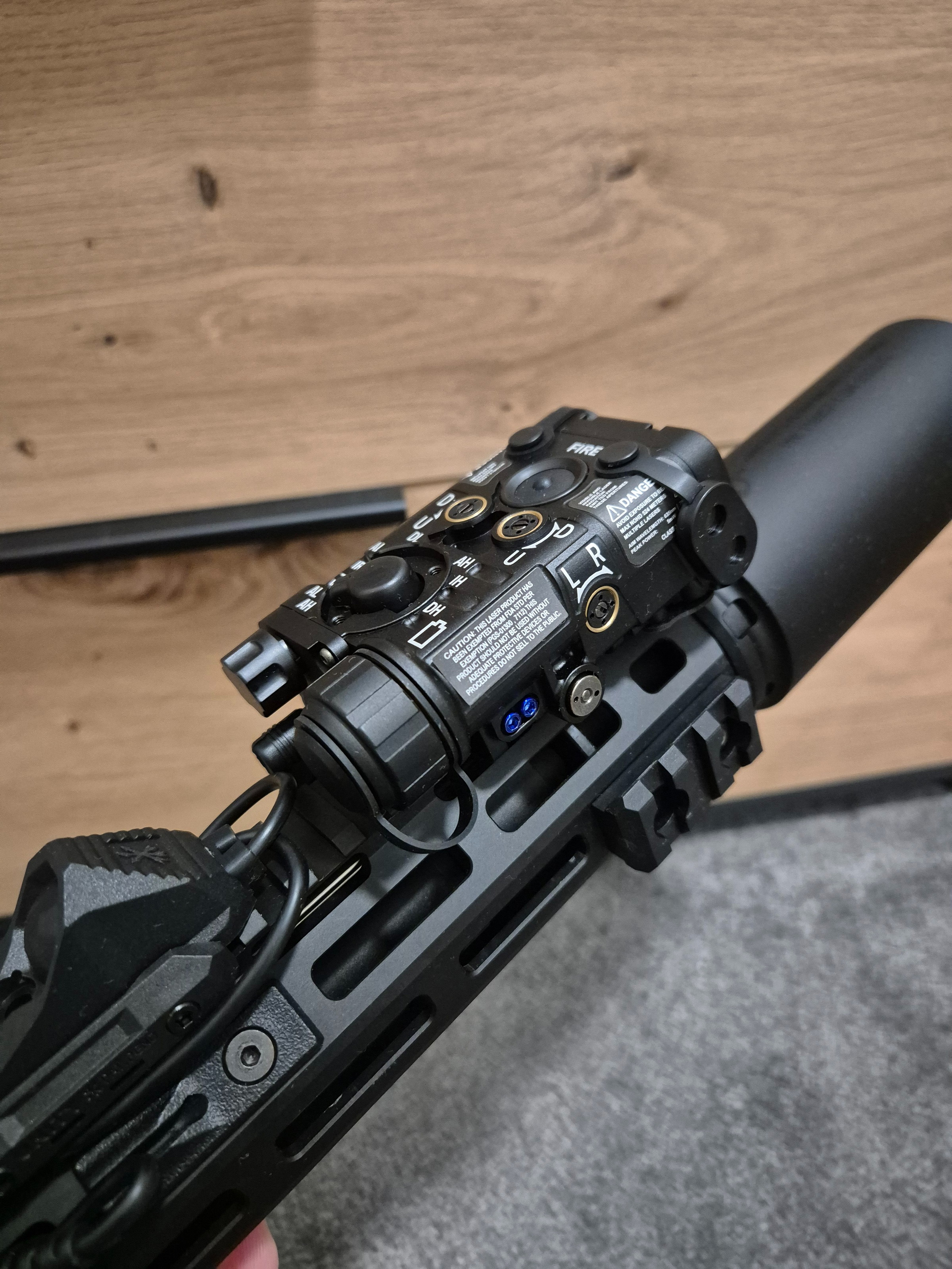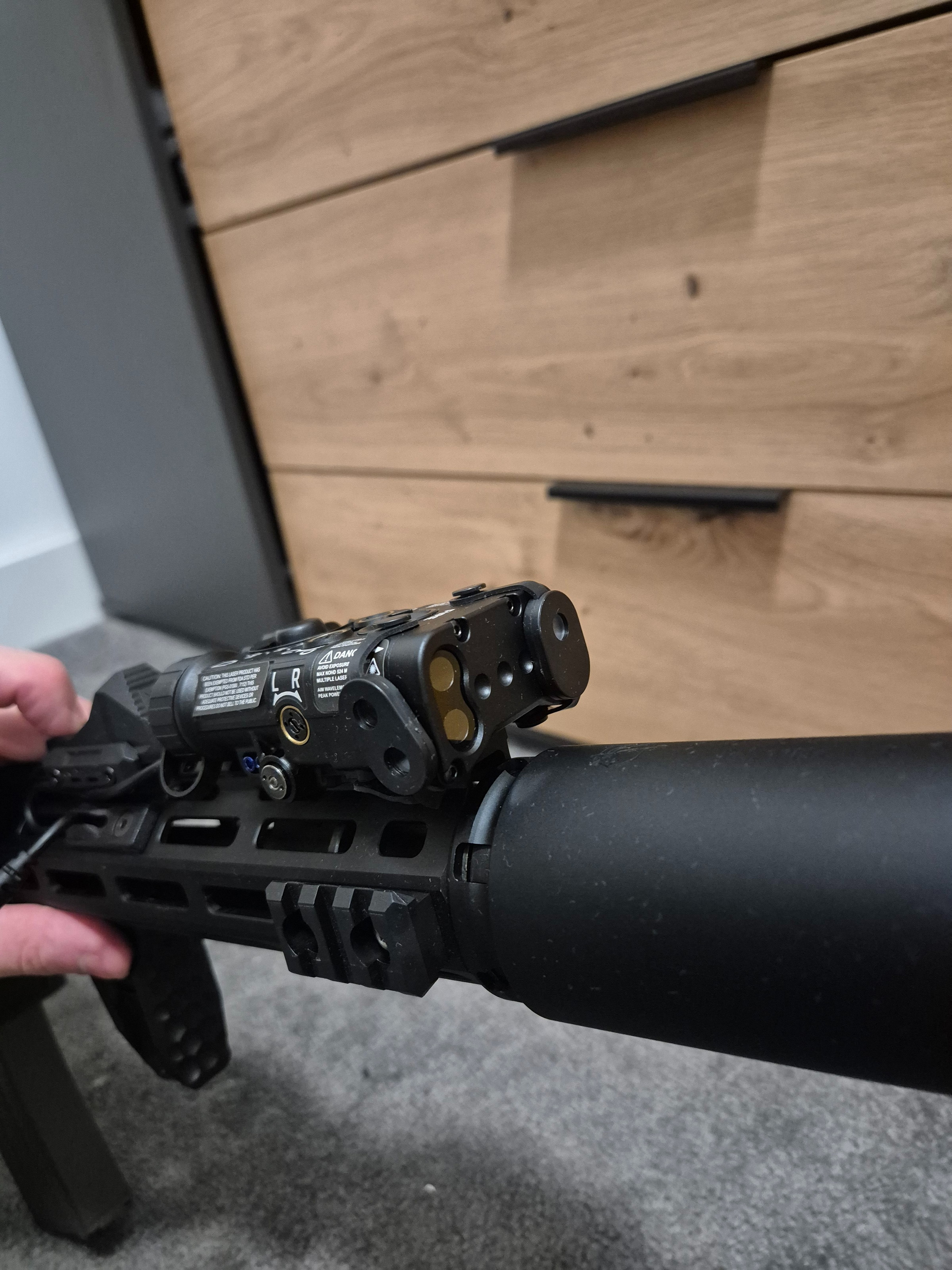 Betreft een groene zichtbare laser, IR laser en led licht. Heeft een metalen behuizing en is voorzien van alle correcte markeringen. Werkt op een 2.5mm plug en CR123A batterij (niet inbegrepen). Laser is volledig instelbaar.