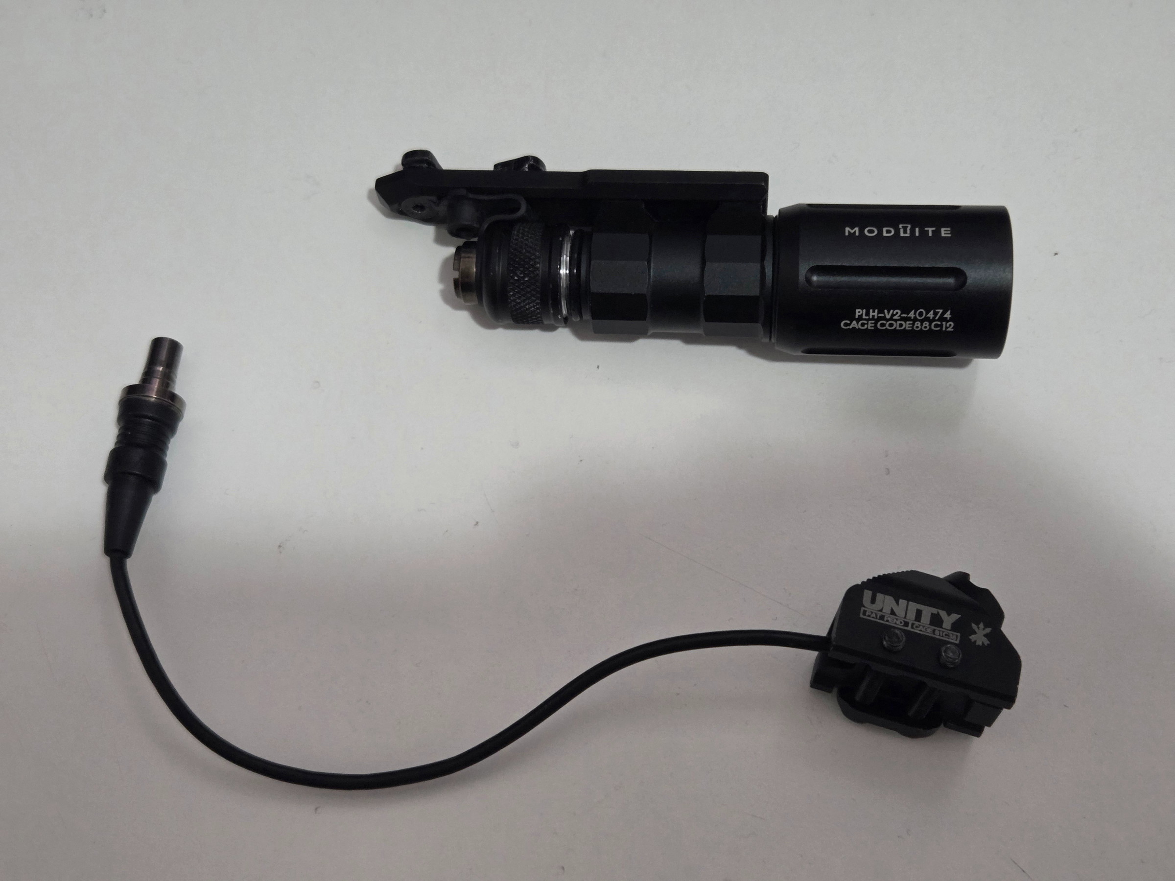 Modlite zeer felle flashlight, komt met mlok mount en unity pressure pad canted.
