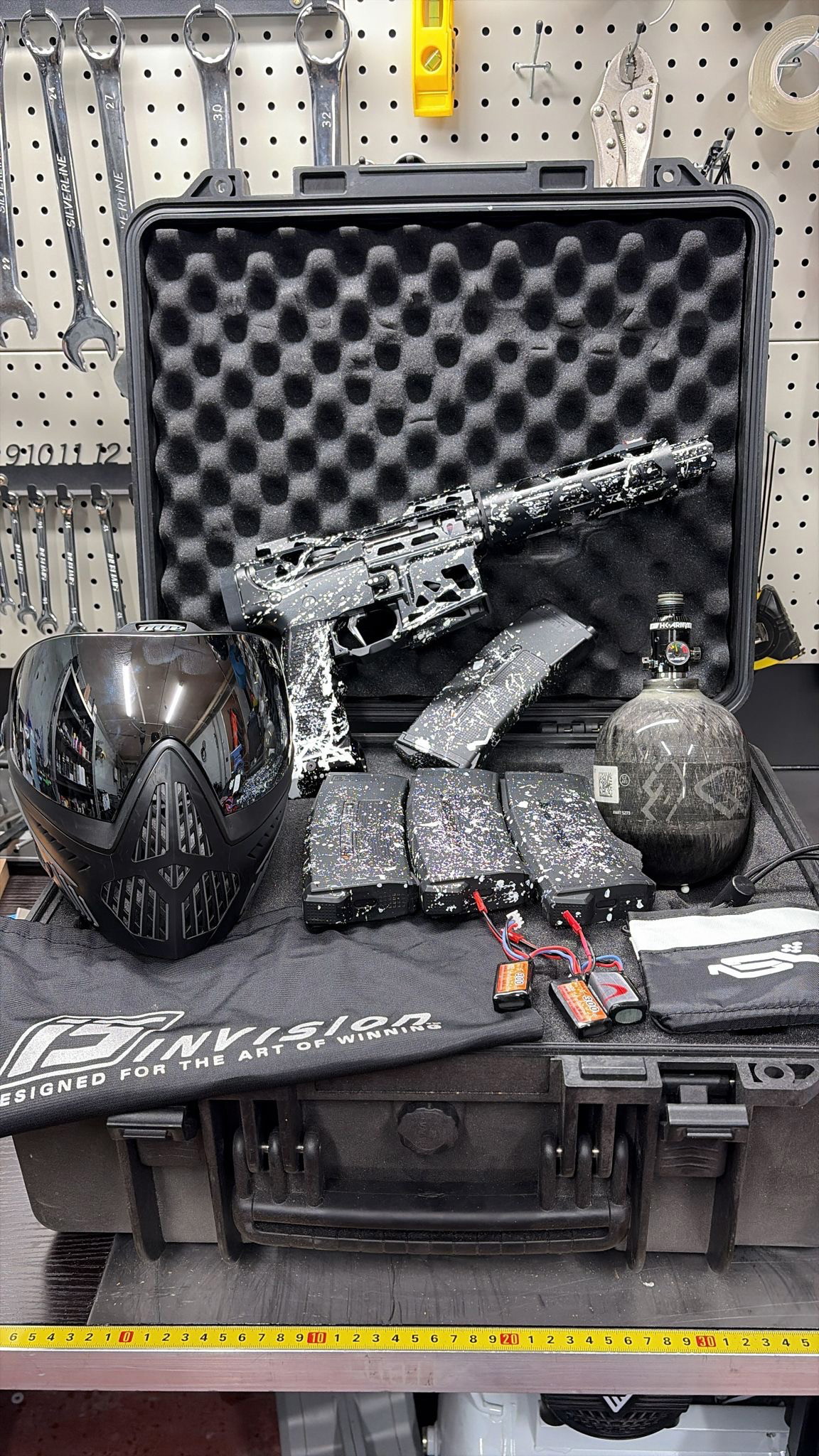Mijn vriend is gestopt met airsoft en verkoopt zijn uitrusting. Hij heeft er maar vijf keer mee gespeeld.