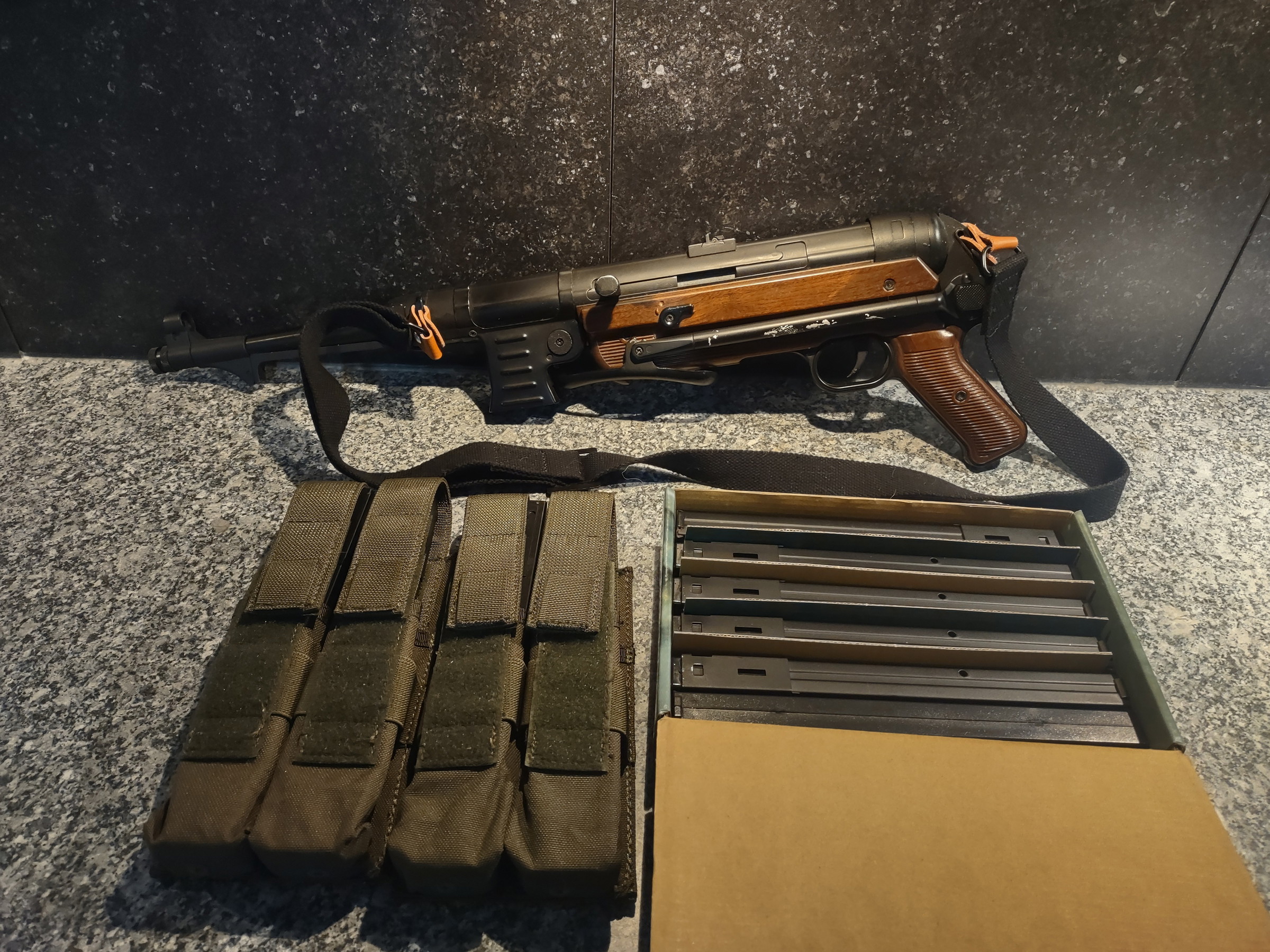Eenmaal op skirmish meegeweest. Wat lichte verf schade op de schoudersteun en barrel. 5x king arms plastic magazijn, 5 x originele AGM magazijnen.Β