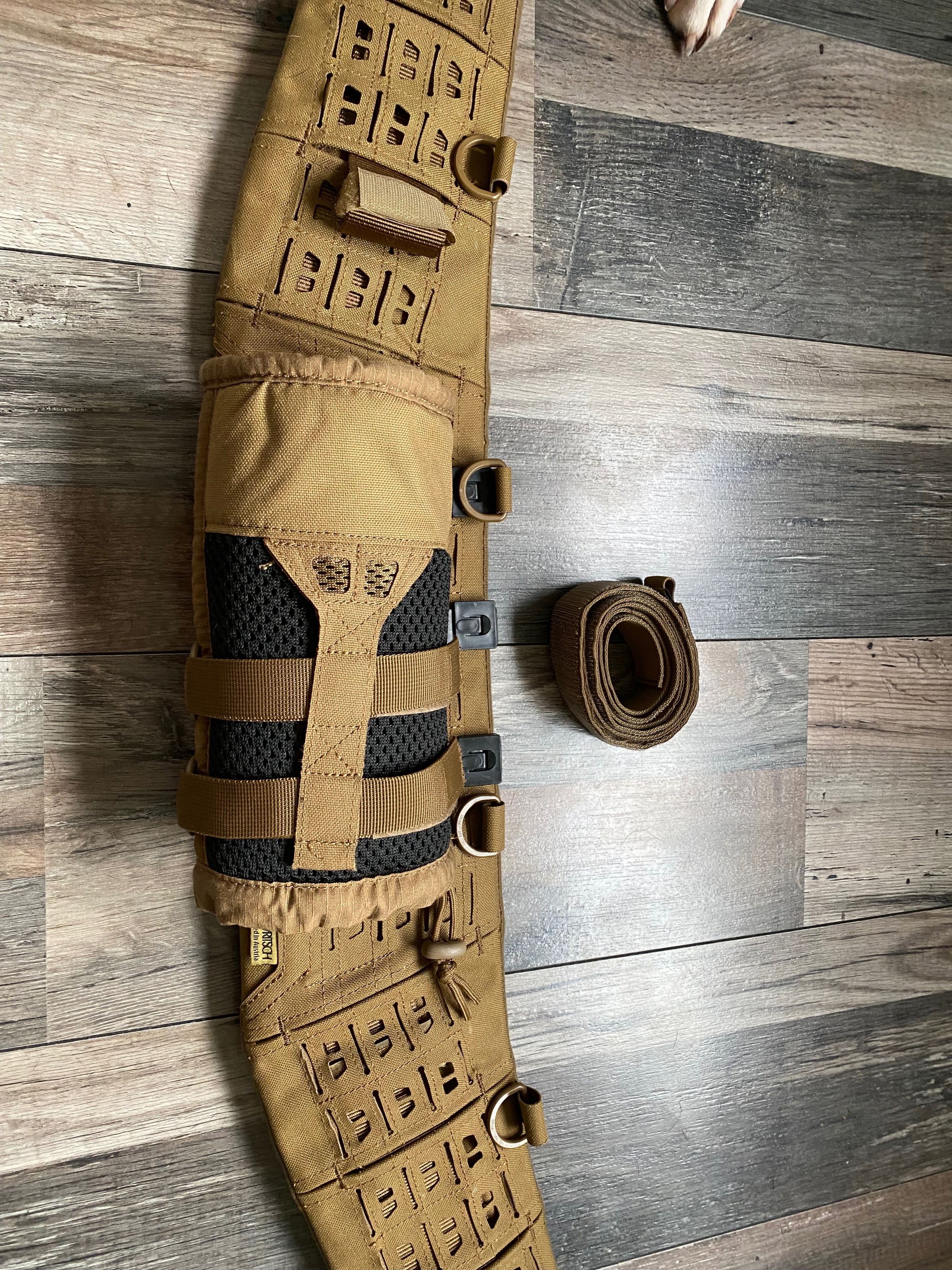 Bij deze te koop aangeboden: Novritsch battlebelt 4.0 Laser-Cut. In de kleur Coyote, met bij passende Novritsch HPA Bottle MOLLE Pouch in dezelfde kleur. Ik heb er eventueel ook nog een 0,8L alu HPA tank bij ter overnamen. ophalen of verzenden.Β