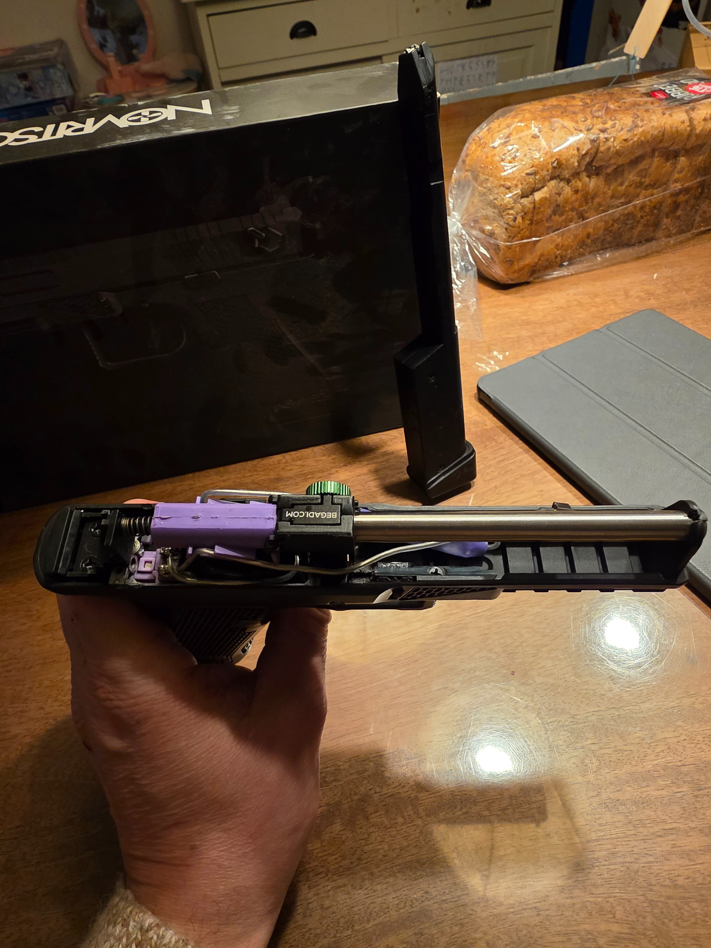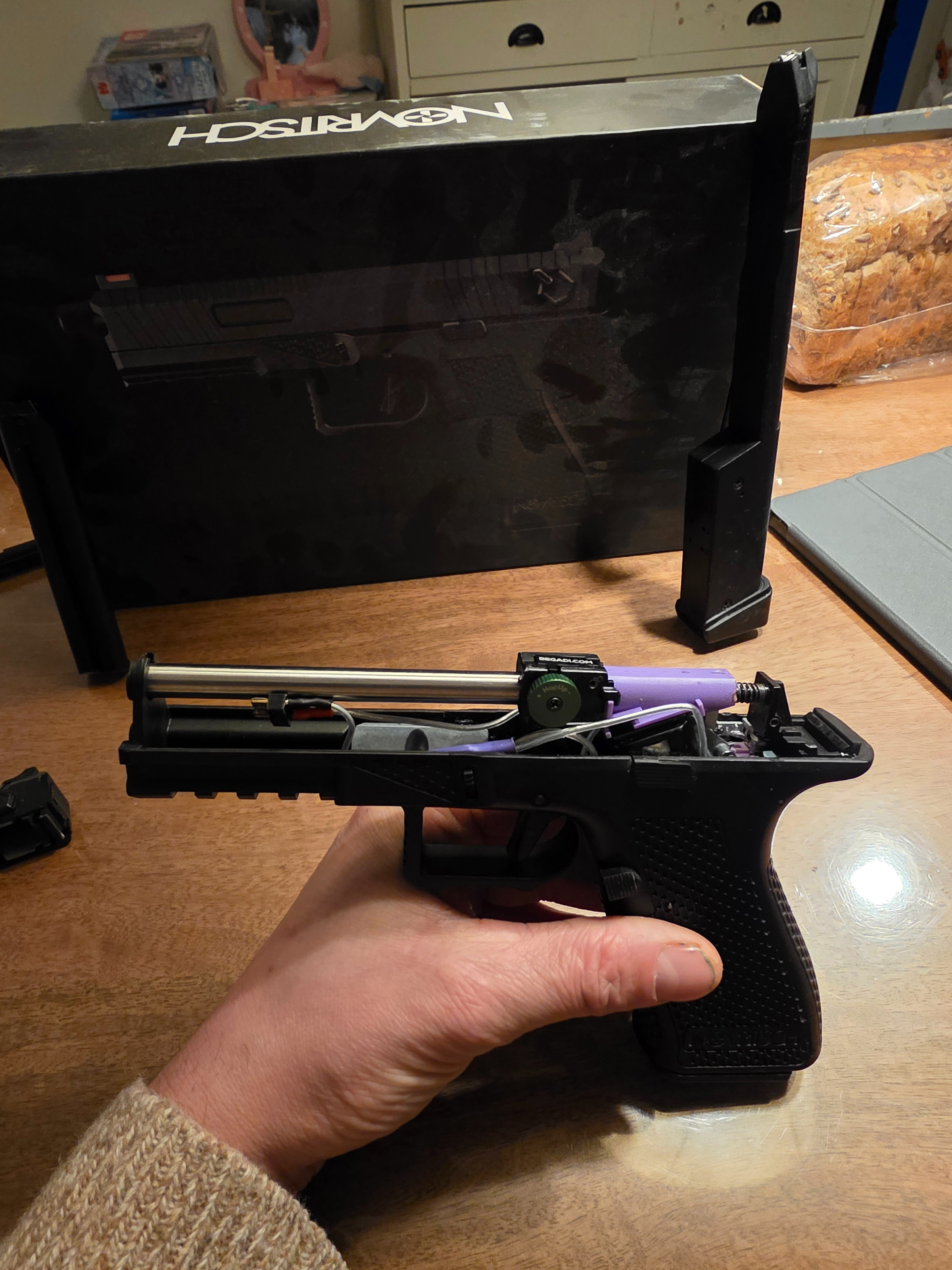 Bij de iner berel voor op bij het plastick ziet u een klein scheurtje dat komt om dat de nieuwe barrel verlengt is maar dat geeft 0.0 hinder in de presentatie van de replica zie foto ik wil er minimaal 100 euro voor lipo zit er ook bij liefst bij overdracht testen bij het nabv nac geldermalsen