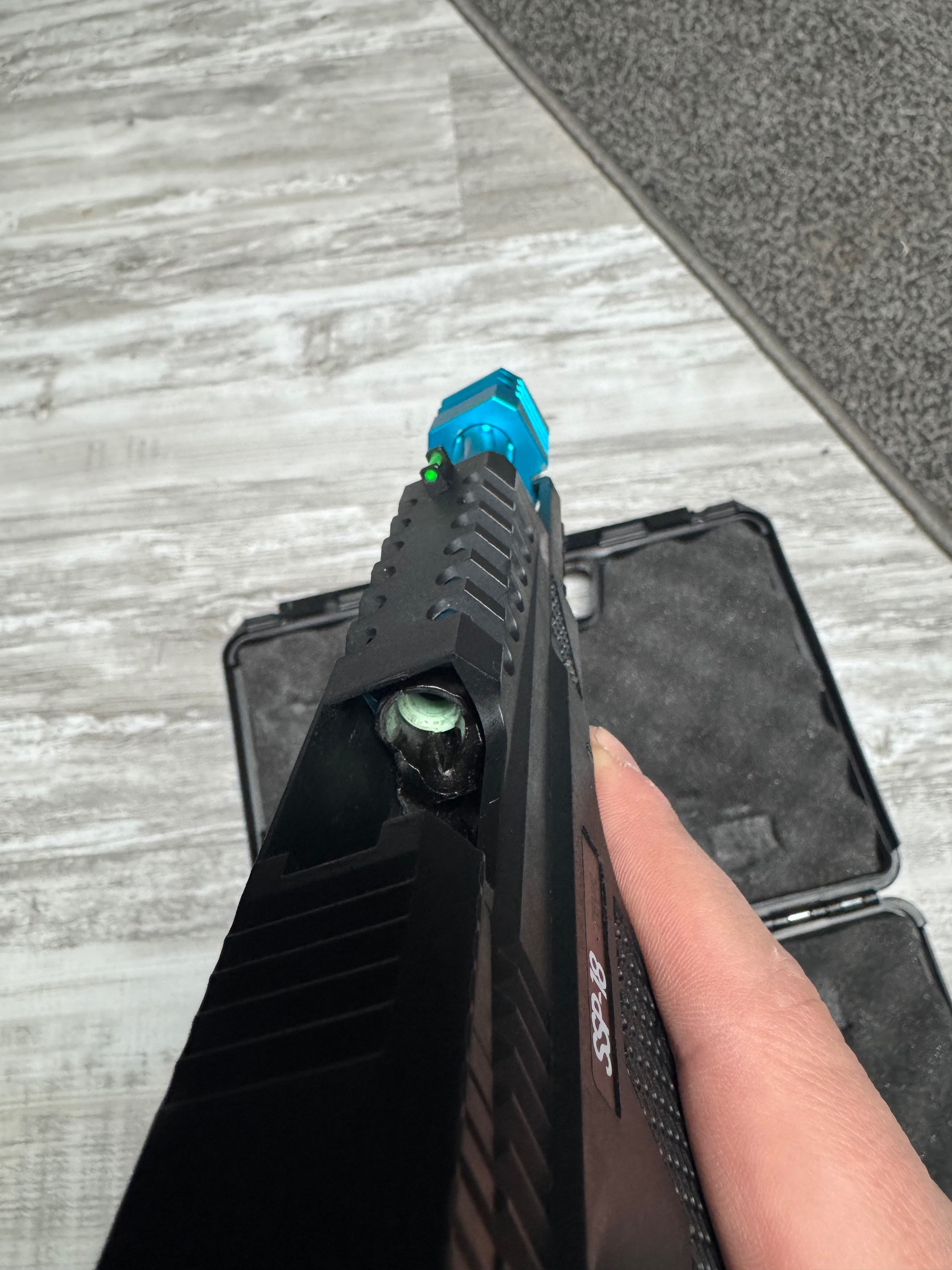 Hij is geupgrade met een reinforced hammer , lichtere slede, verlengde innerbarrel en de gekleurde onderdelen