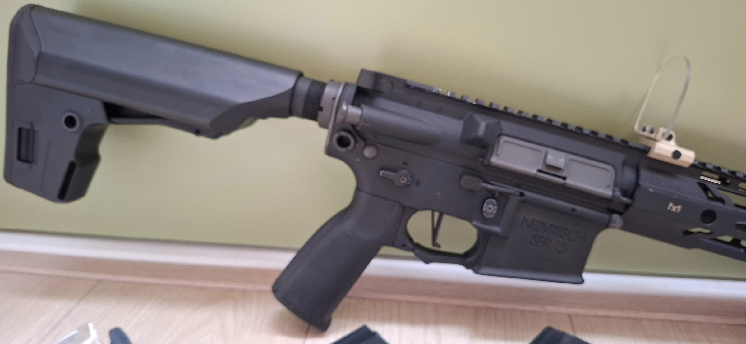 Te koop: Novritsch SSR-15 karabijn (AEG). Recent professioneel schoongemaakt en gearbox ingevet. Schiet soepel, getest op 1,05 J. Inclusief 2 magazijnen, Titan digital LiPo-charger, 1450 LiPo (in Lipo-Guard), koffer, vuller, extra schroeven & tandwieltjes