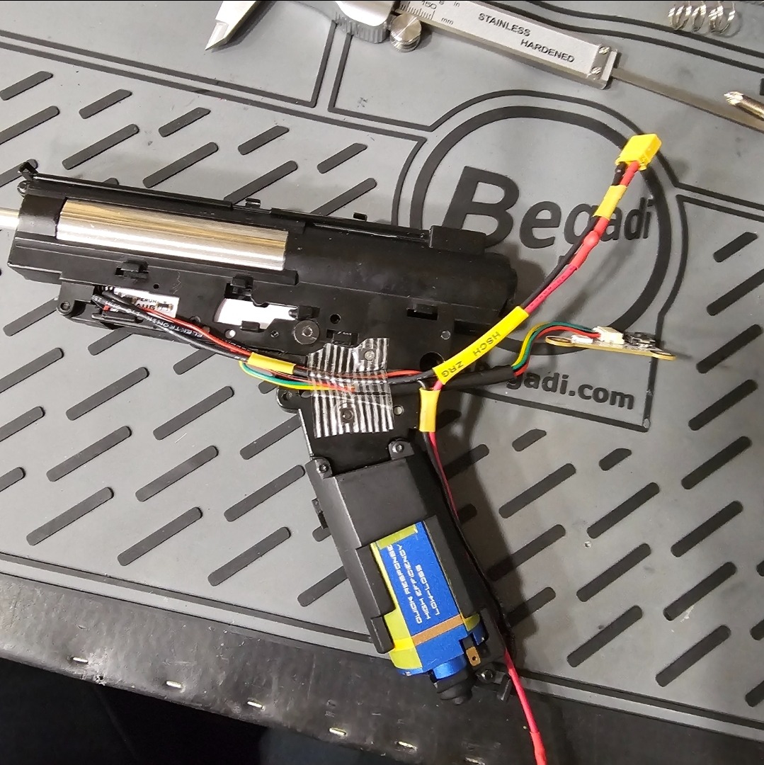 6x mid cap magazines, Holo AMG UH1 V2, longer outer barrel, A2 handguard and all original parts included in package.