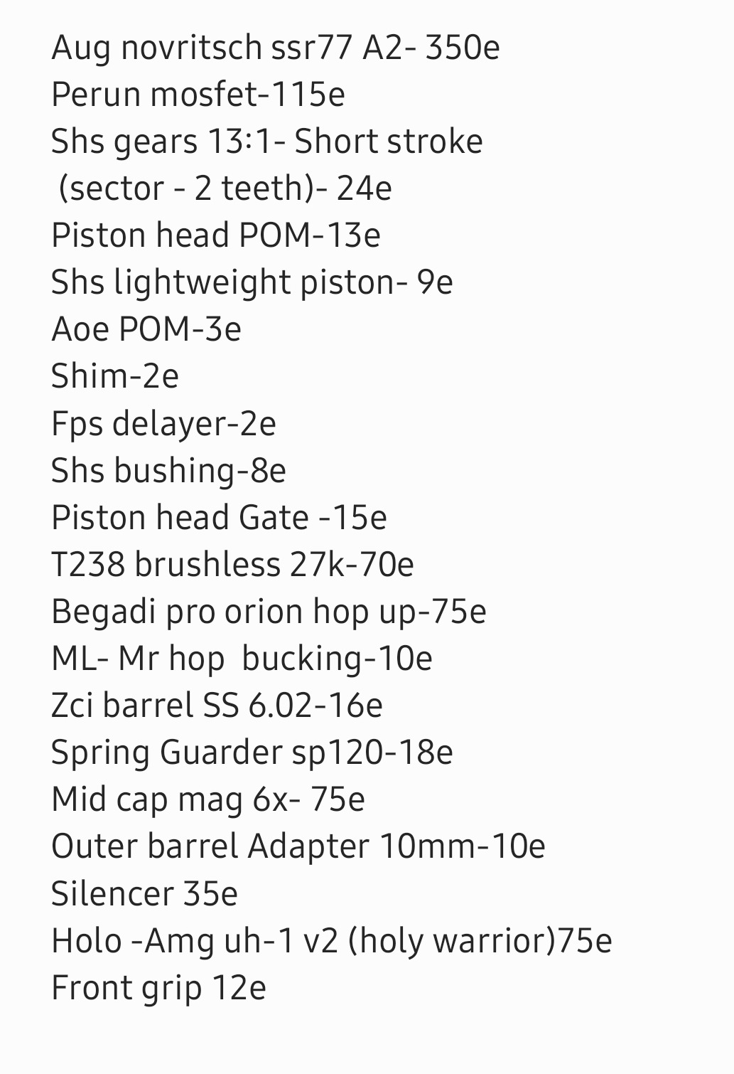 Full upgrade part list in the last photo