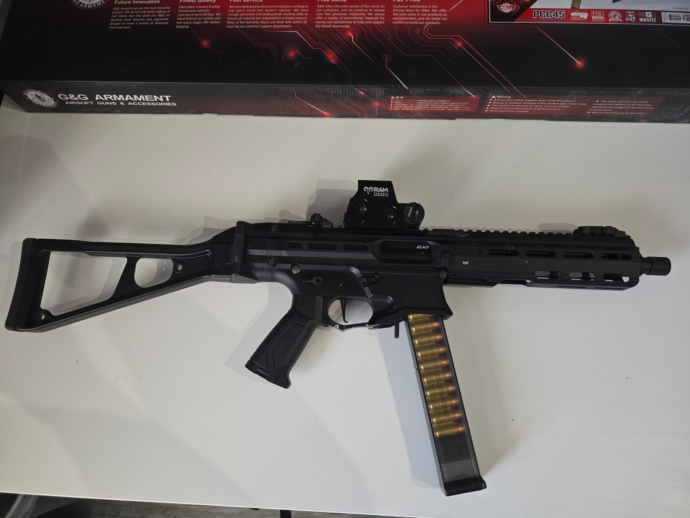G&G PCC 45. Nog zo goed als nieuw. Slechts een aantal skirms mee gespeeld, verkeerd in uitstekende staat.