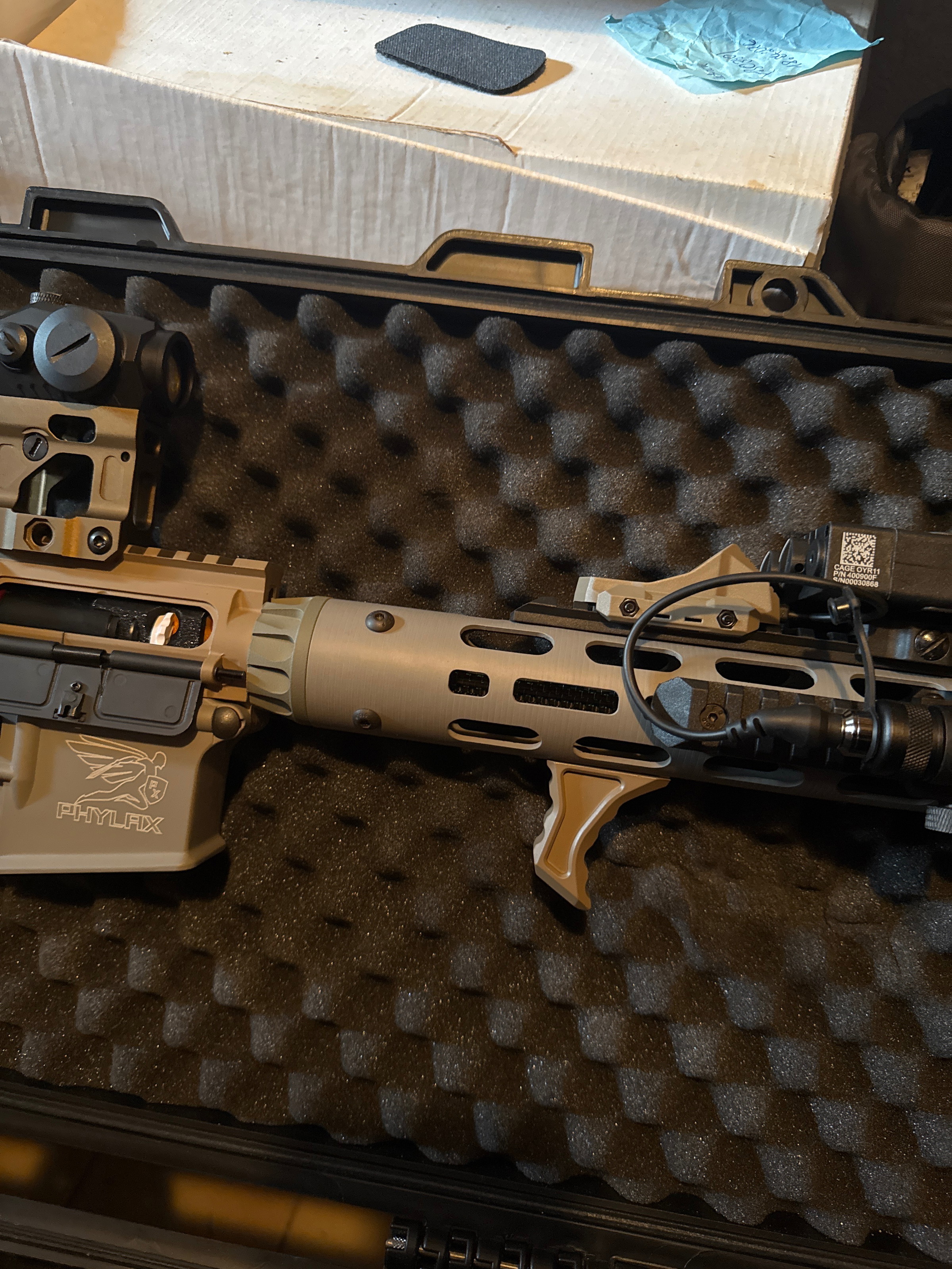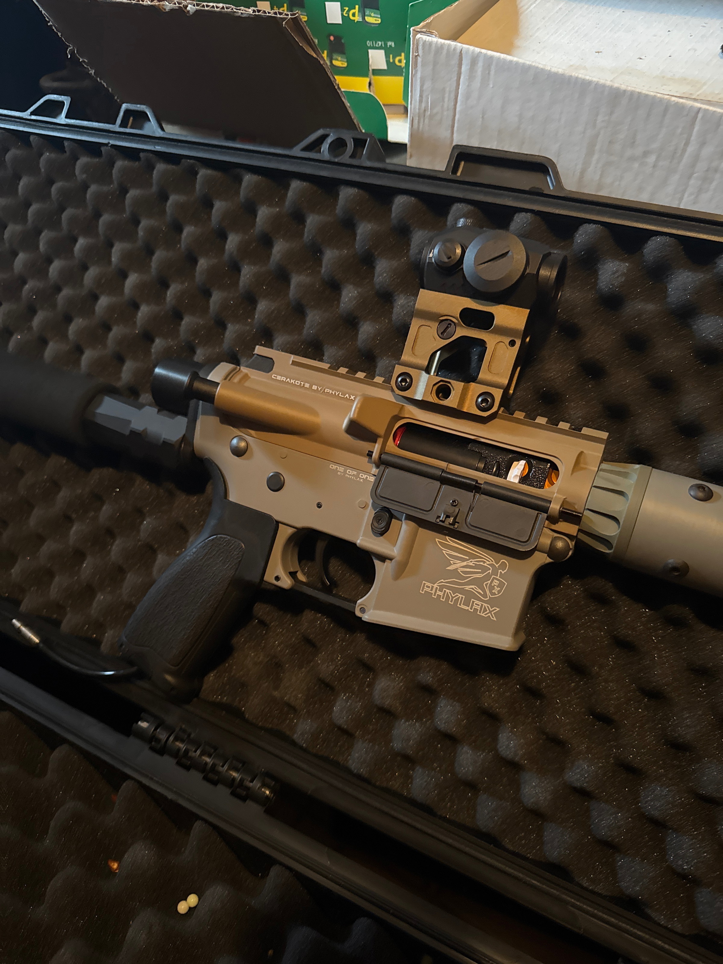 Zum Verkauf steht eine hochwertige Phylax One Of One Airsoft mit HPA-System – ein echtes Unikat für anspruchsvolle Spieler und Sammler. Diese Airsoft überzeugt durch ihre präzise Verarbeitung, starke Performance und zuverlässige Technik. Dank des HPA-Systems bietet sie eine konstante Schussleistung, hohe Effizienz und individuell einstellbare Performance – ideal für ambitionierte Spieler, die Wert auf Qualität und Kontrolle legen.