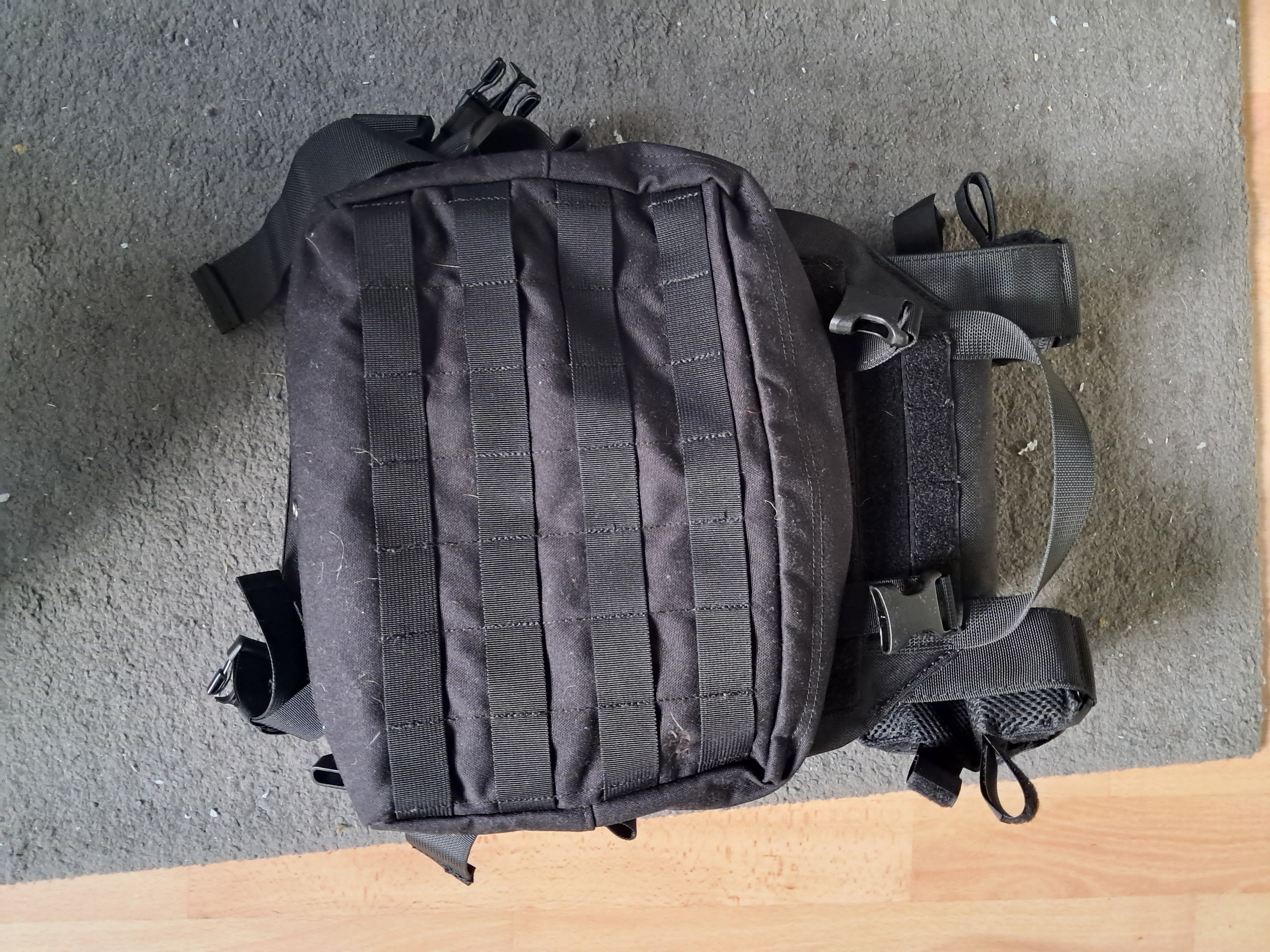 Lightweight plate carrier met pouches en dummy plates. Zwart van kleur, MOLLE