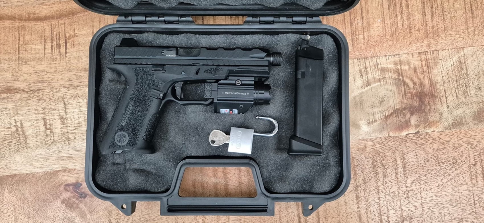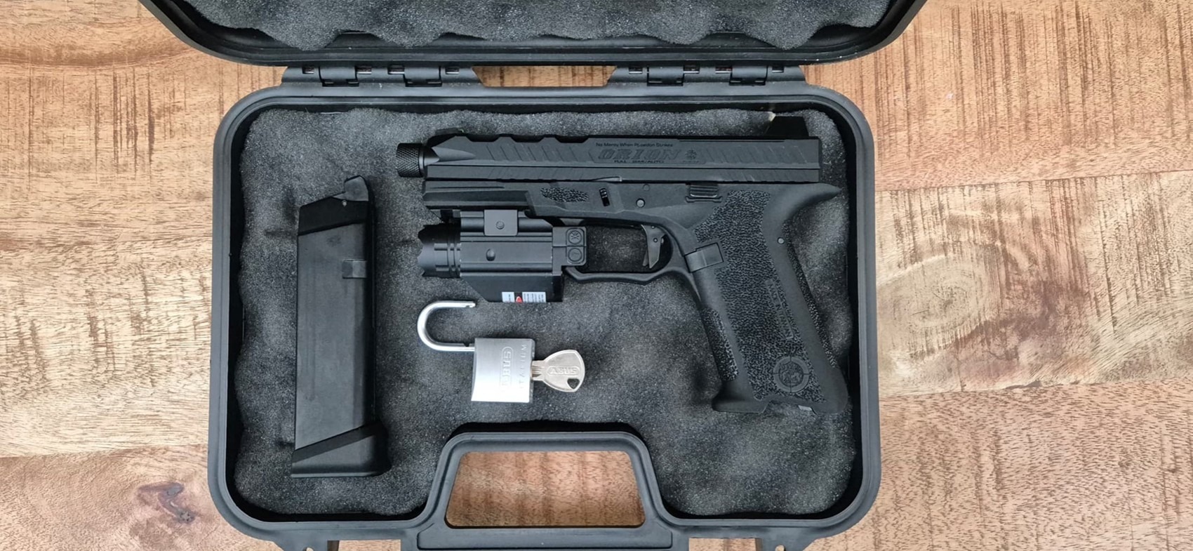Ook wordt deze meegeleverd met een koffertje en slot zodat u er niet achteraan hoef. Alles wat op de afbeeldingen te zien is, is erbij inbegrepen. Als u laat weten of u links- of rechtshandig bent zorg ik dat de magazijnpal aan de juiste zijde gemonteerd is. Ik zorg dat de replica goed gesmeerd is, schoon is en klaar voor gebruik.