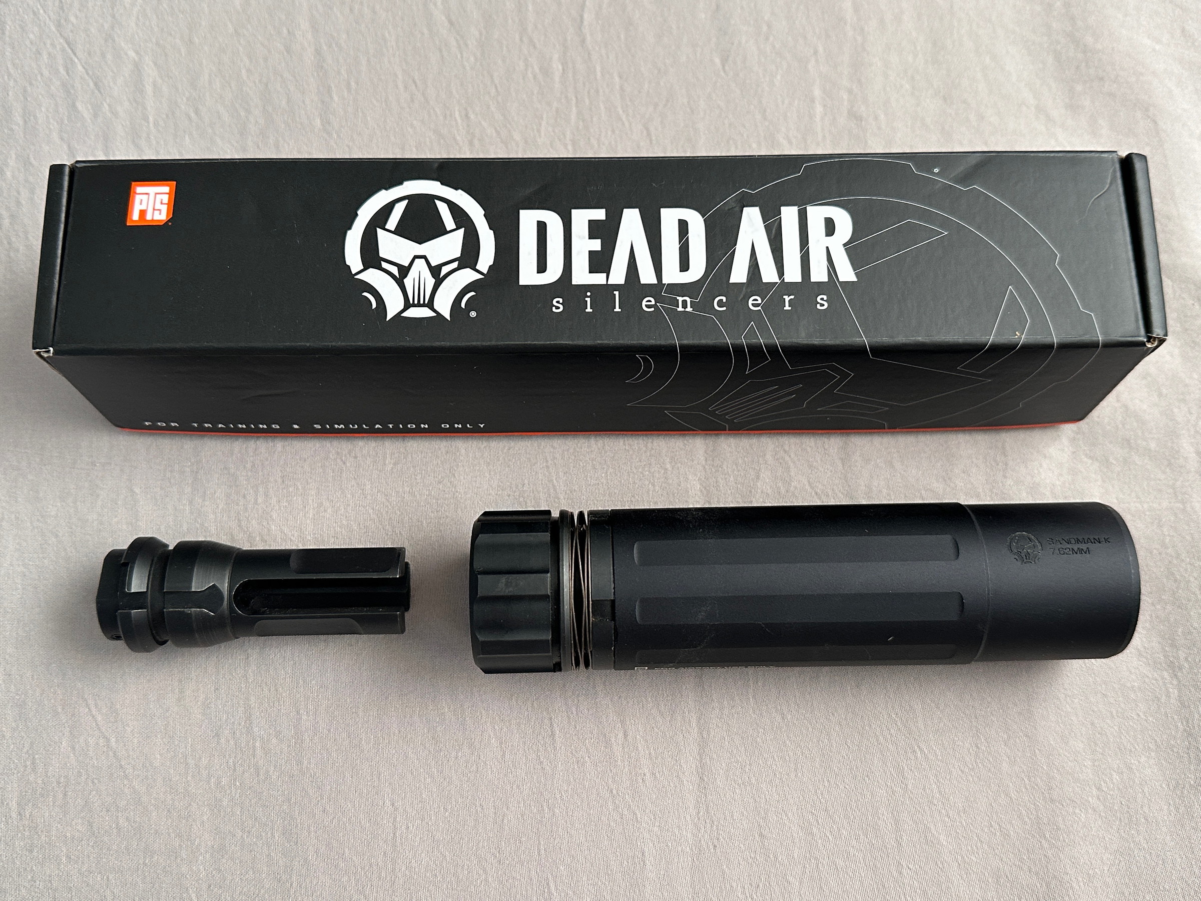 Te koop zeer nauwkeurig nagebootste replica van de Dead Air Sandman demper/suppressor van PTS Syndicate