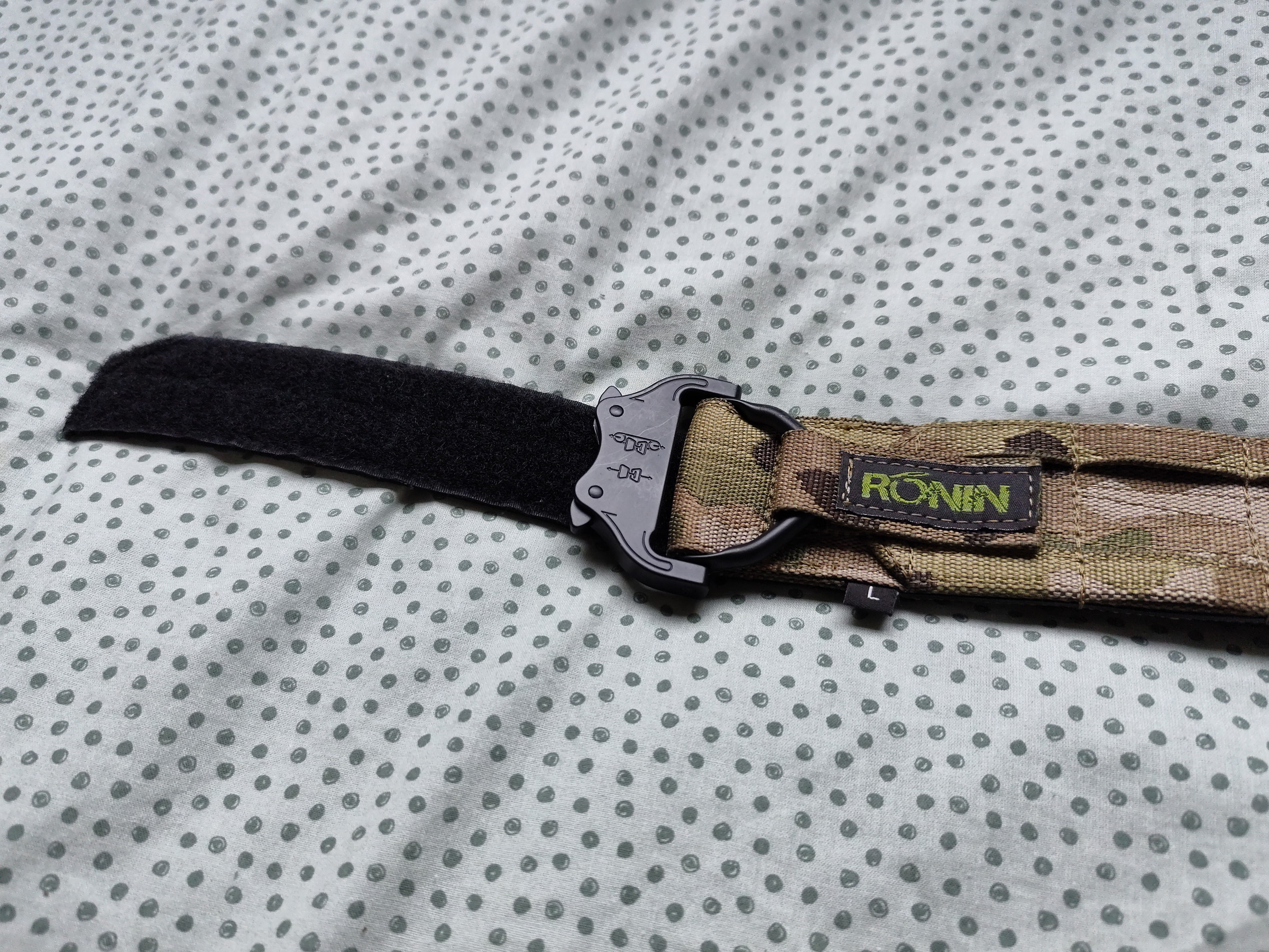 Ronin combat belt in L. Ooit gekocht van ebay maar nooit gebruikt aangezien ik aan alleen een plate carrrier genoeg heb. Zit erg goed vast door de inner belt, en voelt stevig aan.