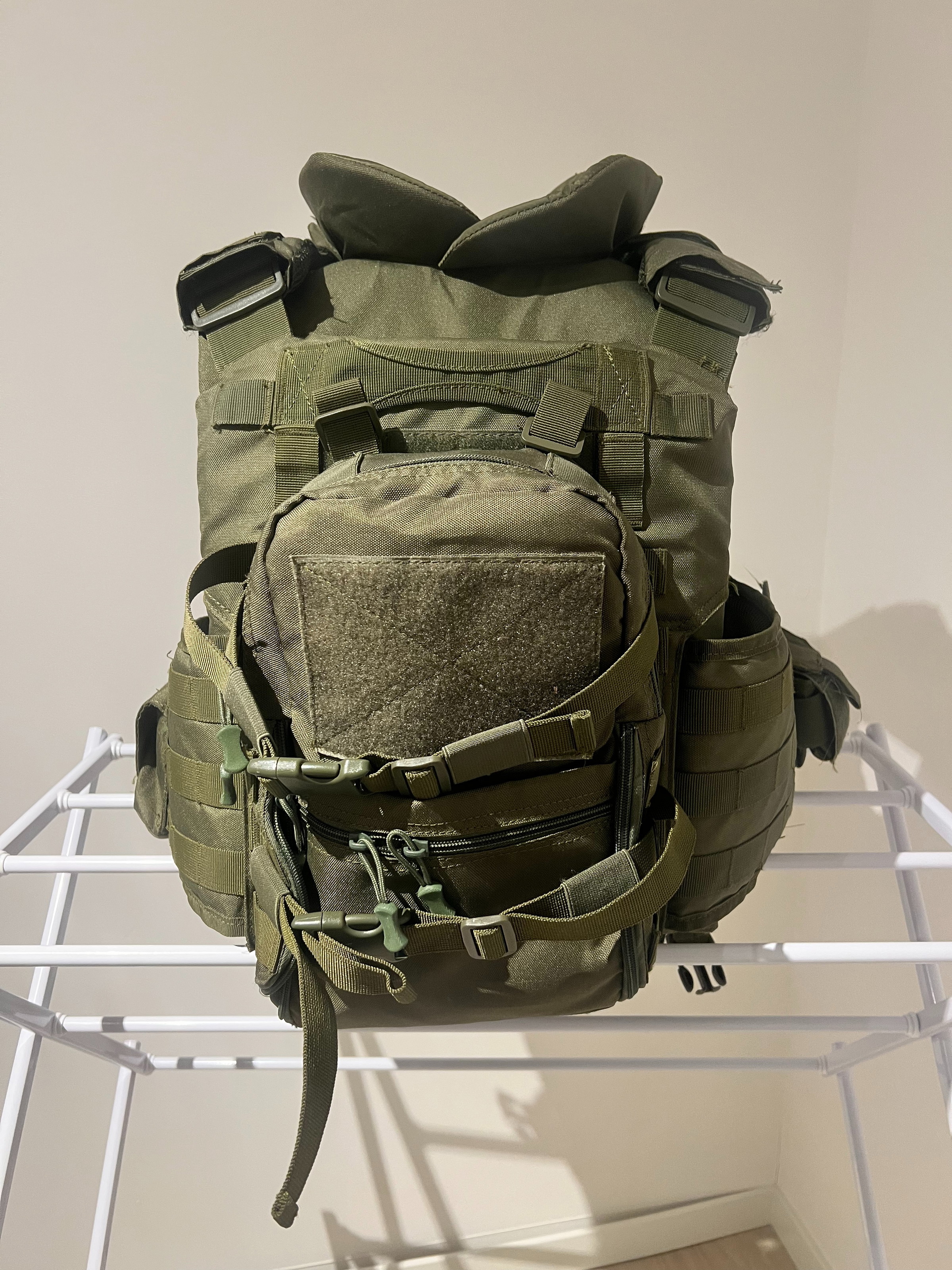 Inclusief rugplaat met rugzak, tactische riem en holster.