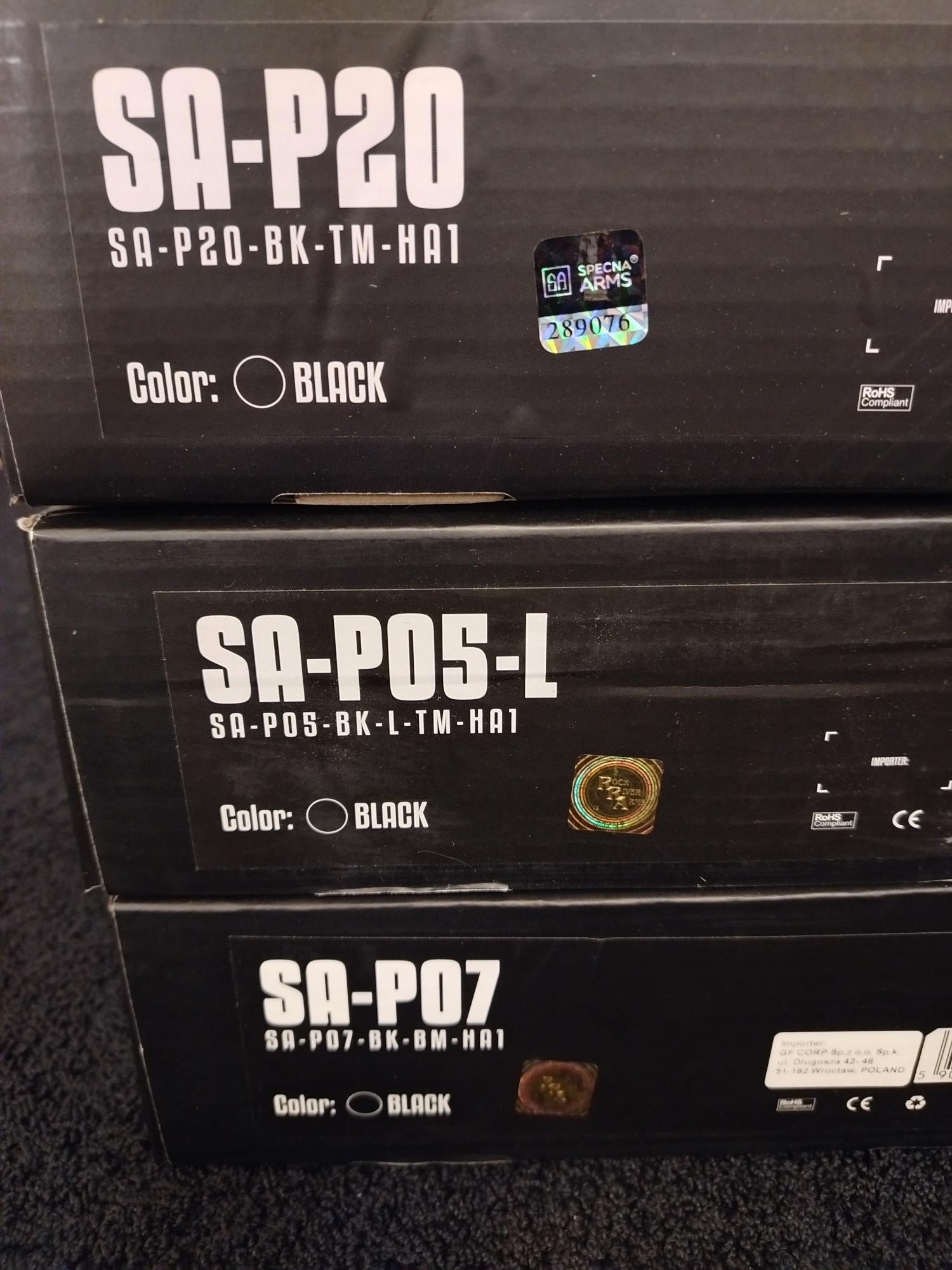 Because of miscommunication I ended up with 3 Specna Arms Prime models this Christmas. Here in Finland energy limit is 1,7J and each of these is little over the limit with standard M120 spring anyway. Therefore any 2 of the 3 options are available and I will keep the leftover 1.  All rifles come as starter pack so