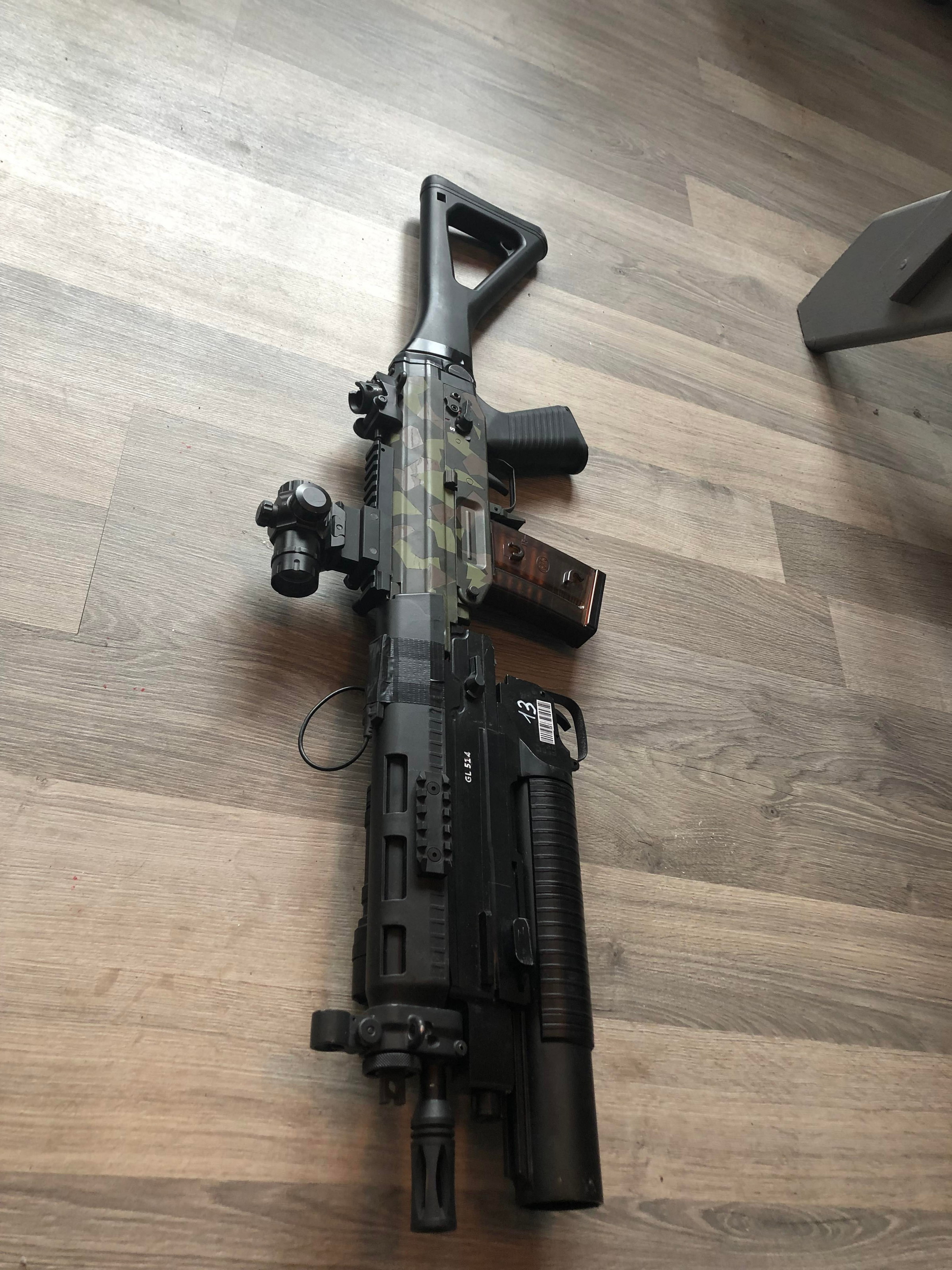 Elle sera livré avec 3 chargeurs hi-cap, son rail, son garde main d’origine et 3 grenades fonctionnelles.