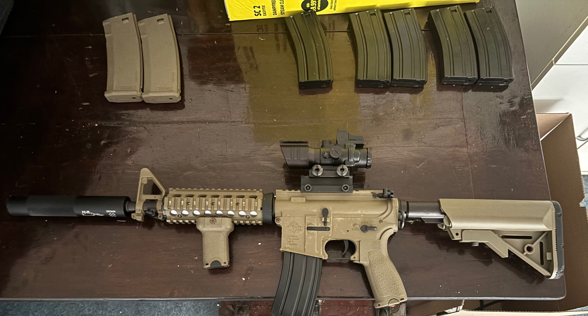Gebruikte Specna Arms M4 inclusief 4x richtmiddel/red dot. Gebruikers schade zoals hulzengatdeksel die niet meer dicht gaat en wat krasjes hier en daar. Werkt nog steeds erg soepel.