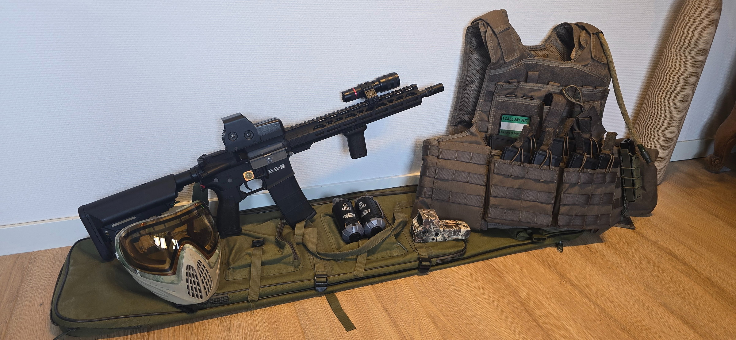 Met leuke extra's zoals 9 magazijnen en een lader + diverse lipo's. Evt ook tactical vest te koop en een full face paintball mask (die niet beslaat) ook geschikt voor 11v lipo's. Deze specna arms heeft een mosfet.