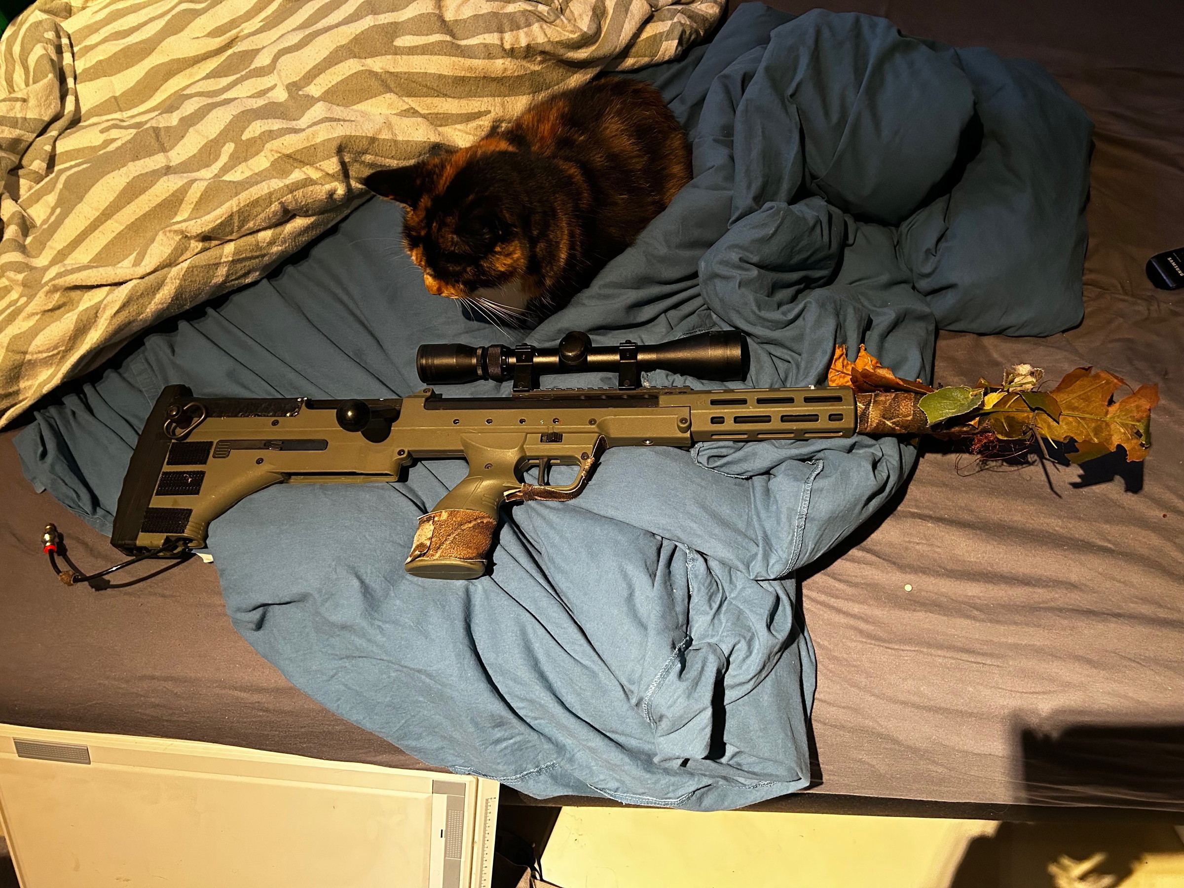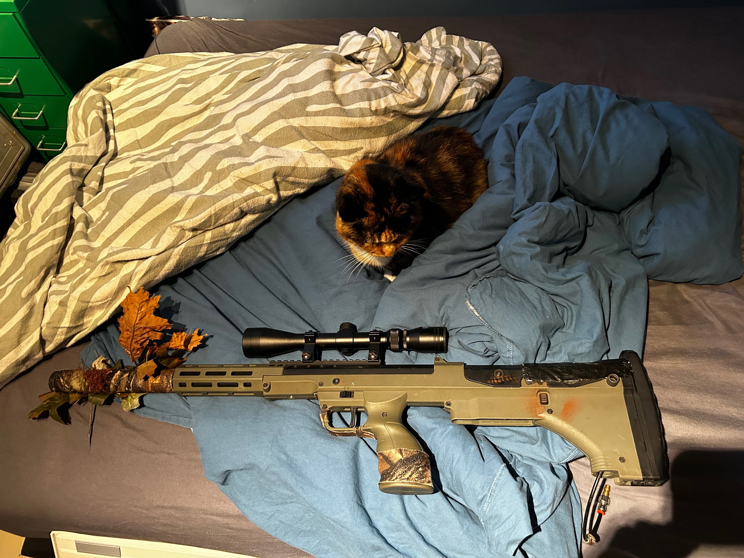 Dit is mijn srs a2 op hPa soon to be yours. Hij schiet geweldig zit een maxxx hop up in en een Wolverine bolt m. Ook krijg je de originele onderdelen er bij. Hij is zo gemaakt dat hij zeer stil is vandaar het tape. Je zou het er zelf af kunnen halen vind je de looks niks. Hij komt met 8 mags en 4 mag pouches. Prijs valt te overleggen. En kan geruild worden tegen een hpa cqb build.