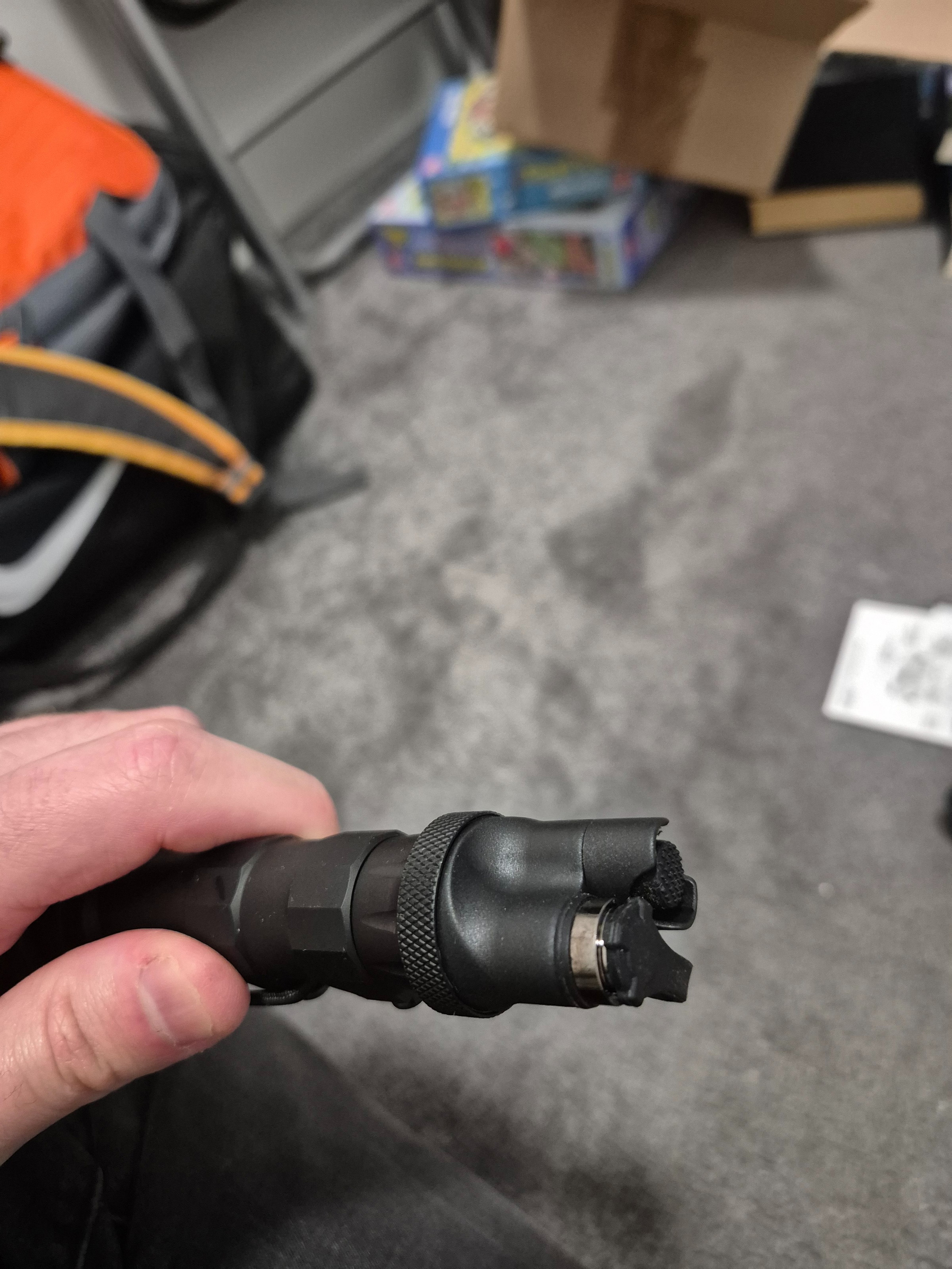 Endcap voor Surefire en Modlite lampen, wat het mogelijk maakt een sf plug aan te sluiten EN de lamp zelf te bedienen met de knop.Β