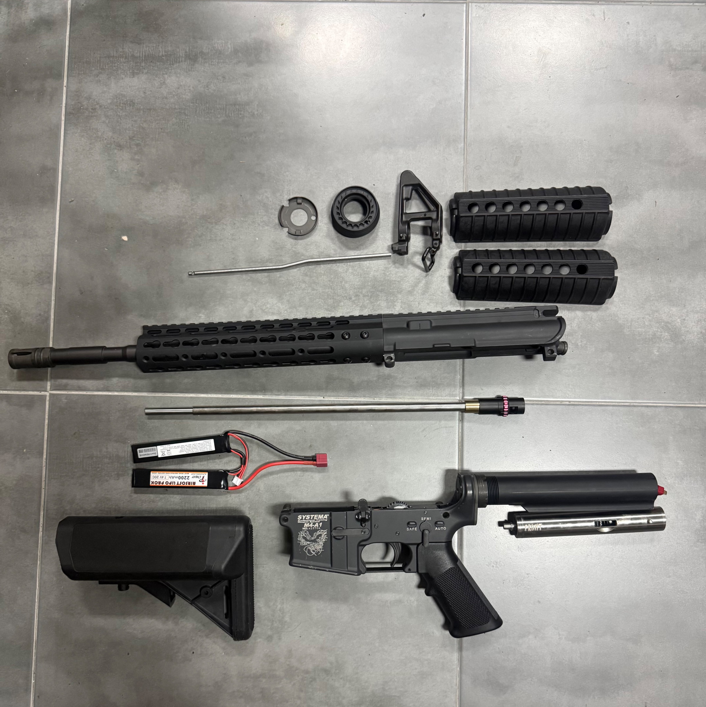 Se vende systema M4A1 con cañón de precisión TNT, hop cambiado, cilindro Fight Club Custom M100, batería nueva.