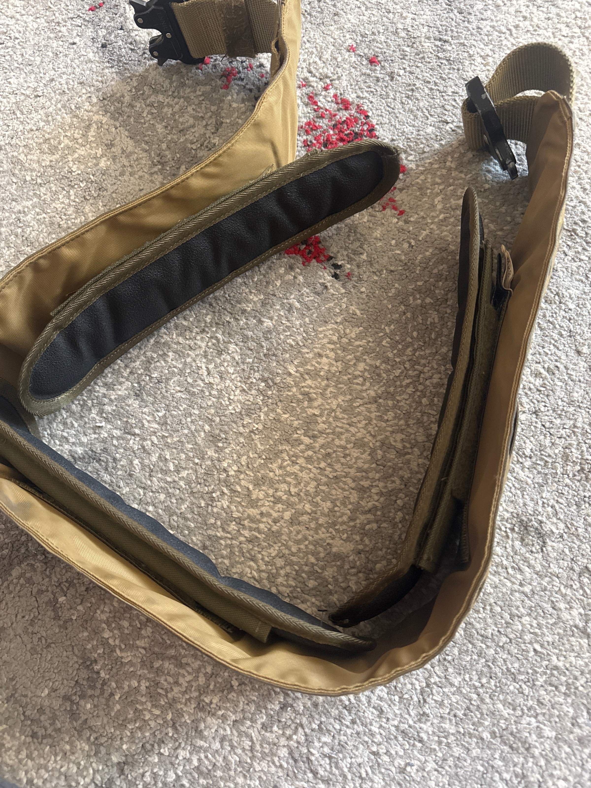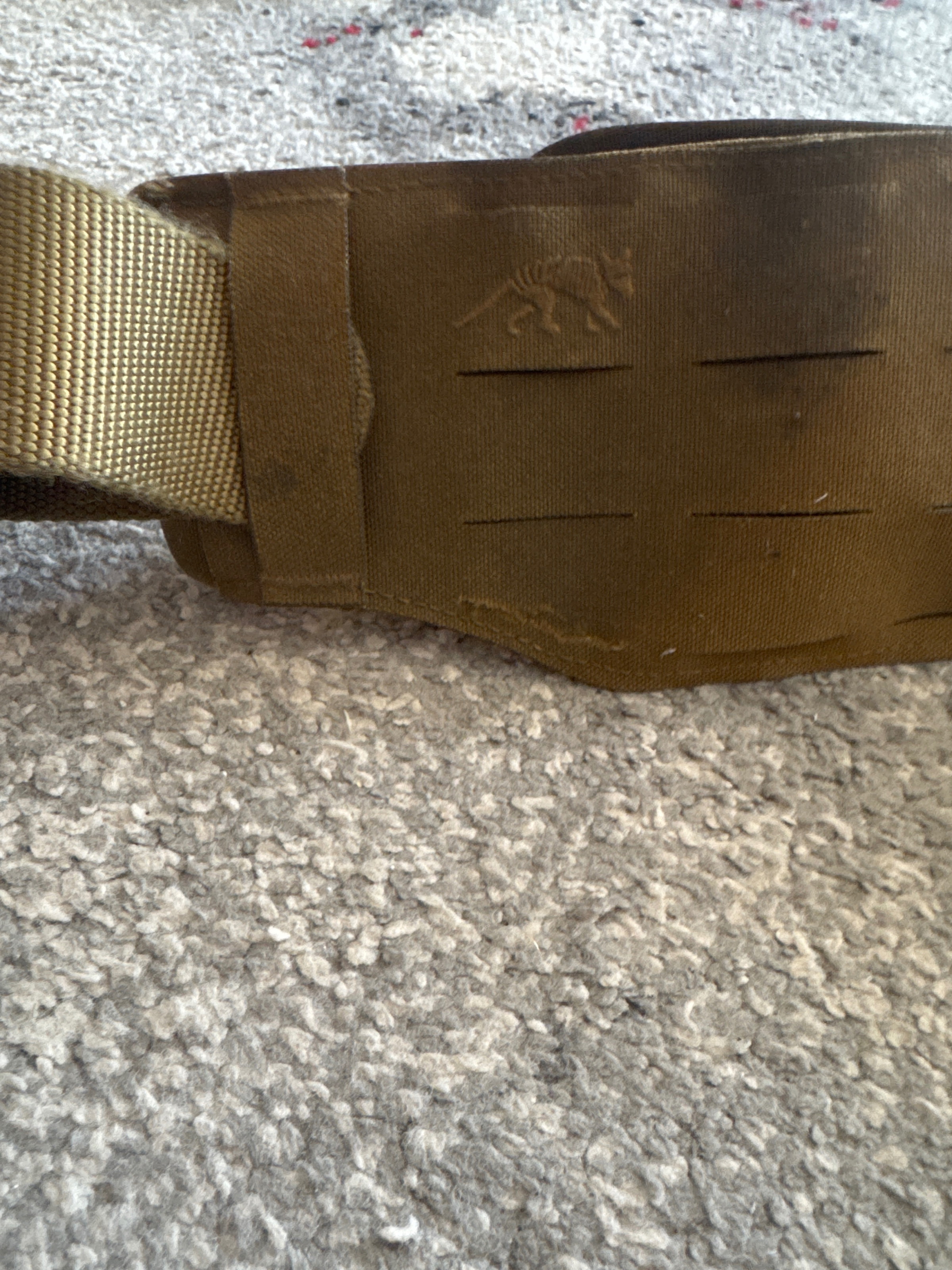 Biete hier einen Tasmanian Tiger Gürtel in Größe L zum Verkauf an. Der Gürtel wurde von mir mit zusätzlichen Schulterpolstern ausgestattet, wodurch er sich deutlich angenehmer tragen lässt – ideal für längere Einsätze, Outdoor-Aktivitäten oder Ausrüstungstransport.
