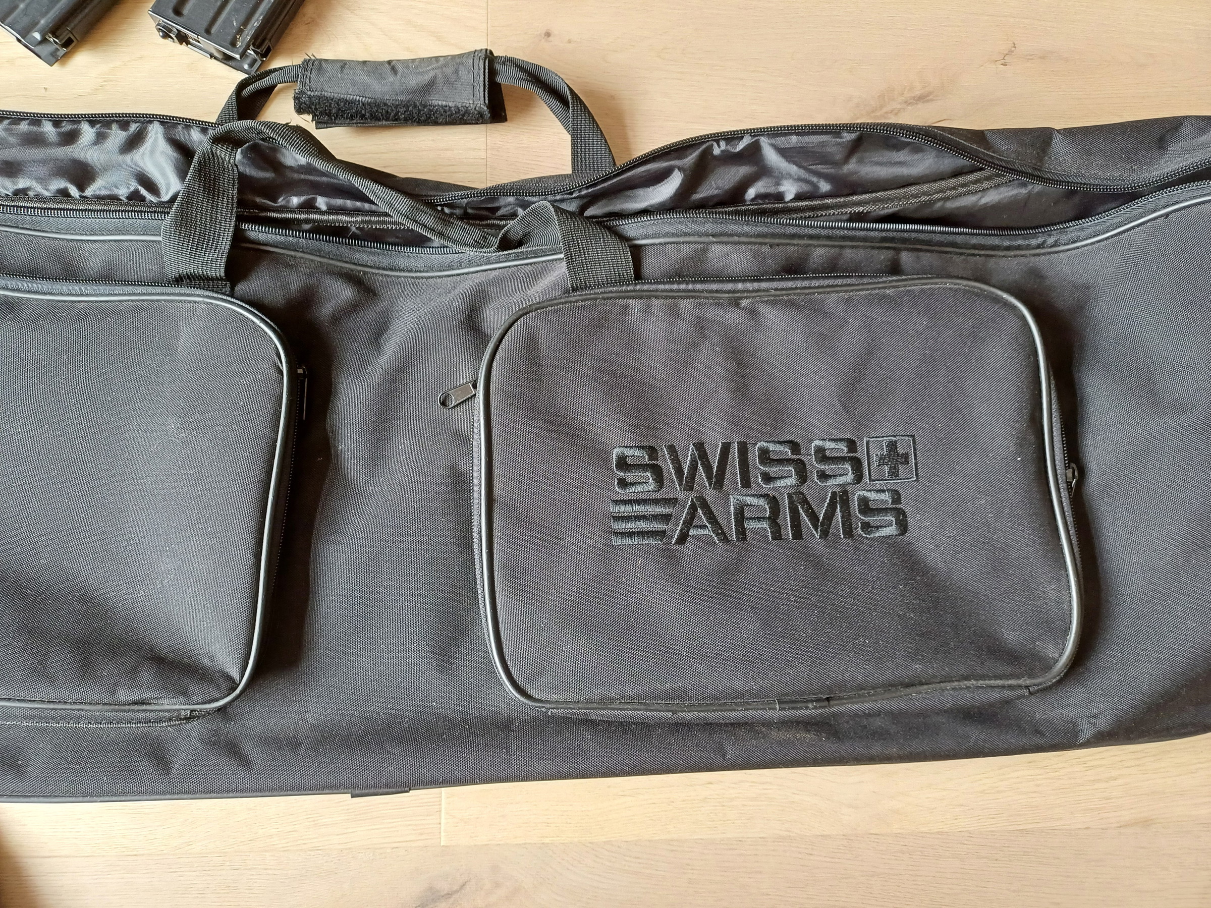 • Transport: Stevige Swiss Arms carry bag (tas).