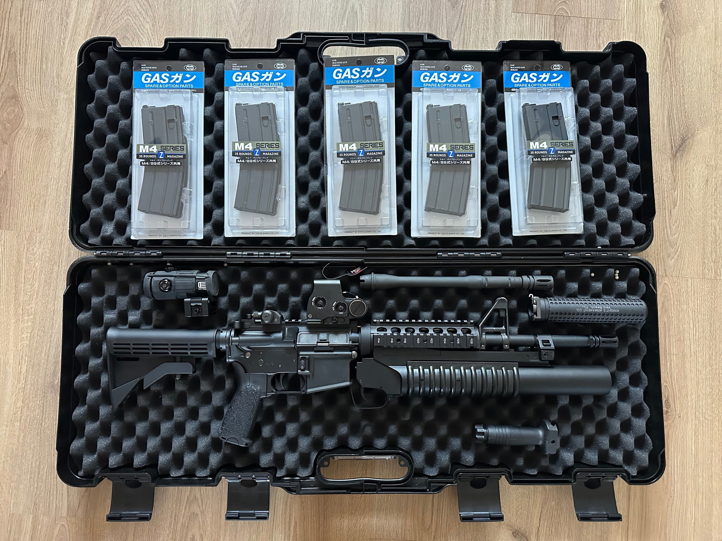 Ik heb deze replica gekocht om er een block 1.5 variant van te maken en wilde ook de optie om er een M203 onder te bevestigen. Maar deze kan dus ook makkelijk verwijderd worden. Dan zit er nog een 10.5 inch outer barrel bij met NT4 suppressor voor een early GWOT special forces build.Β