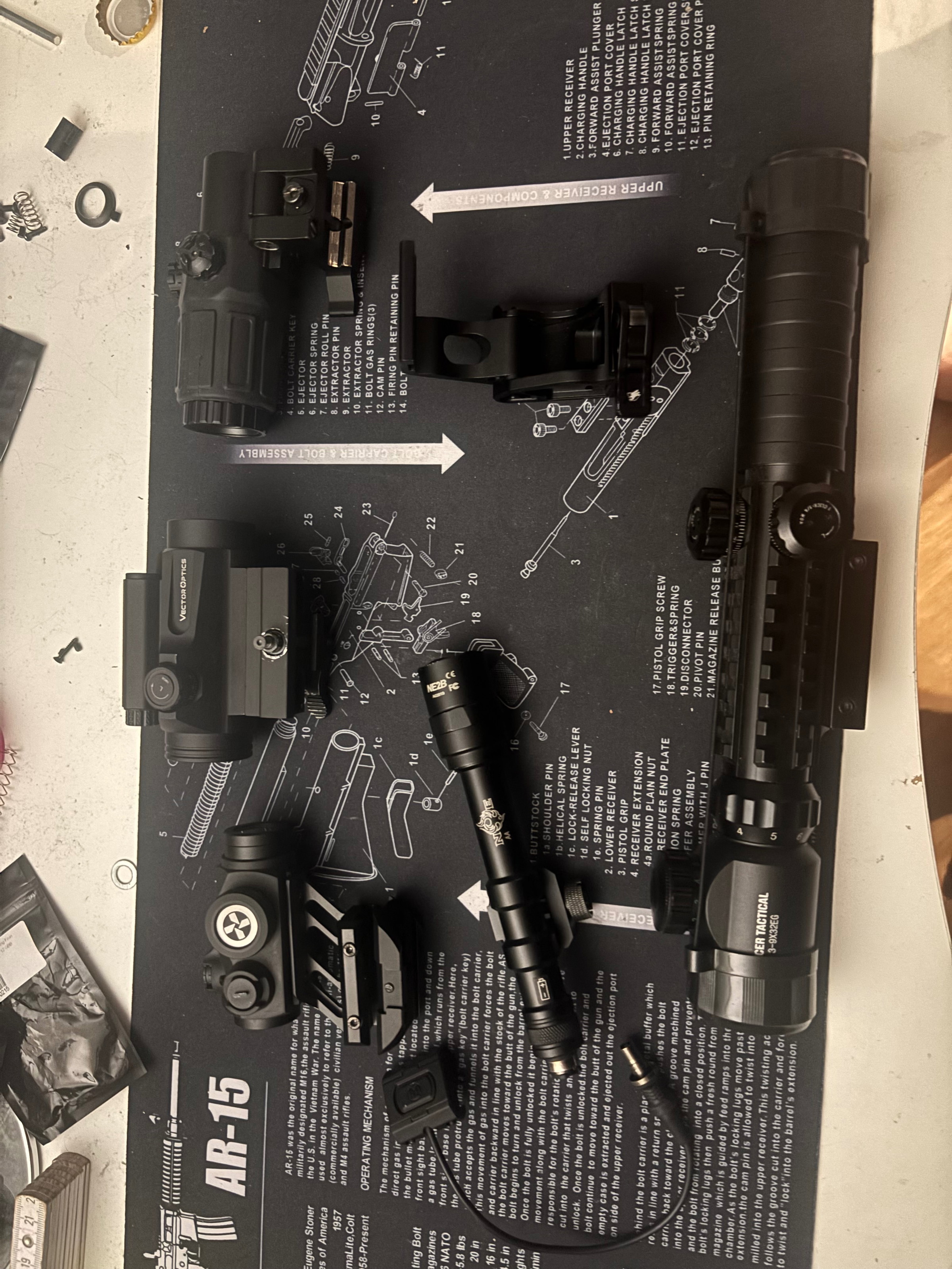 Verschillende reddots + scope en een lamp