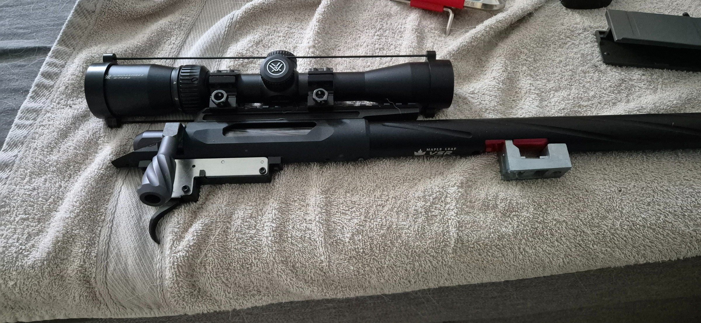 Origineel gekocht als tokyo marui vsr-10 maar alleen de plastic ring is nog Origineel de rest bestaat uit maple leaf en action army parts Welke weet ik niet meer precies
