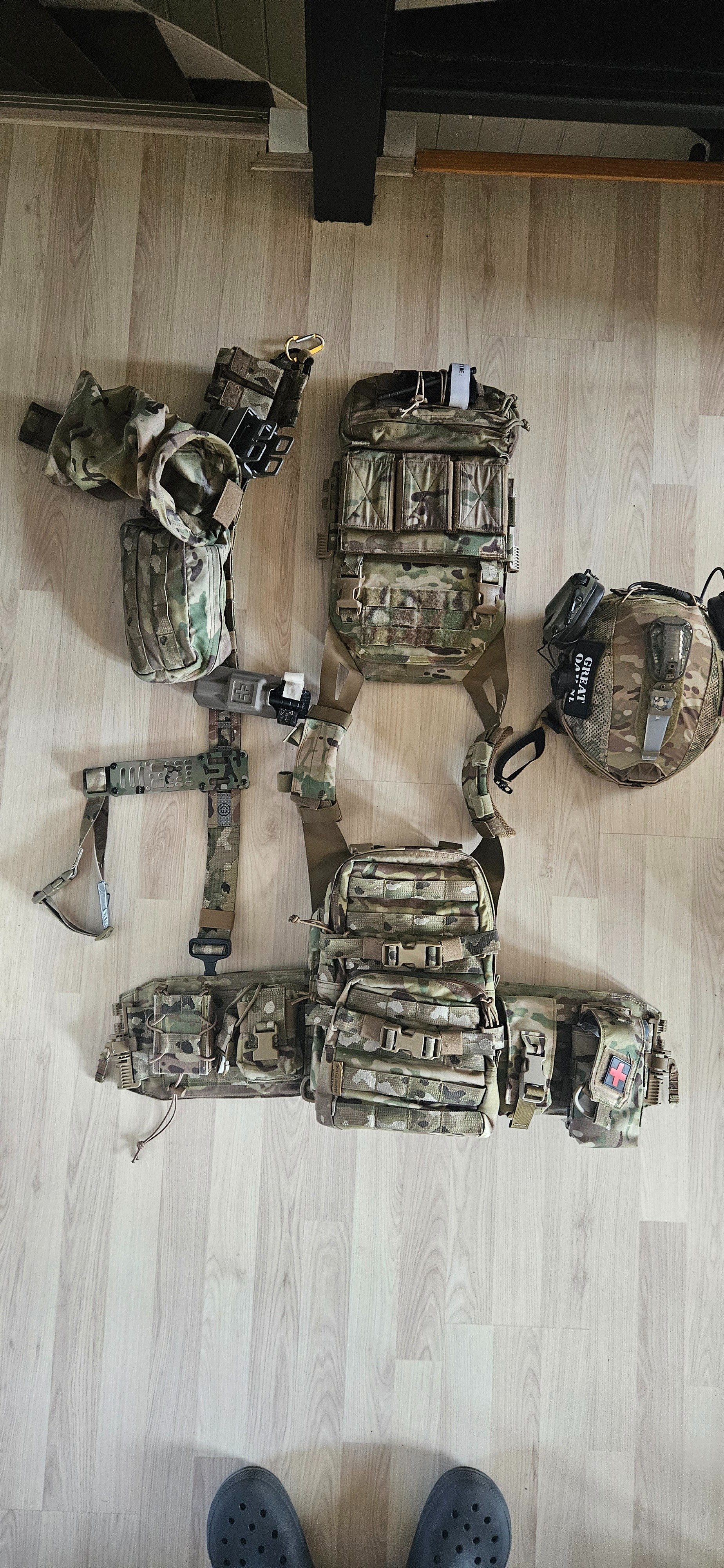 Daarnaast heb ik ook een Crye Precision kledingset, Exfil (Repro) en een GBRS (repro) belt te koop (zie laatste foto). Deze zijn eventueel ook als bundel met de plate carrier over te nemen — bij bundelafname is een mooie prijs bespreekbaar.