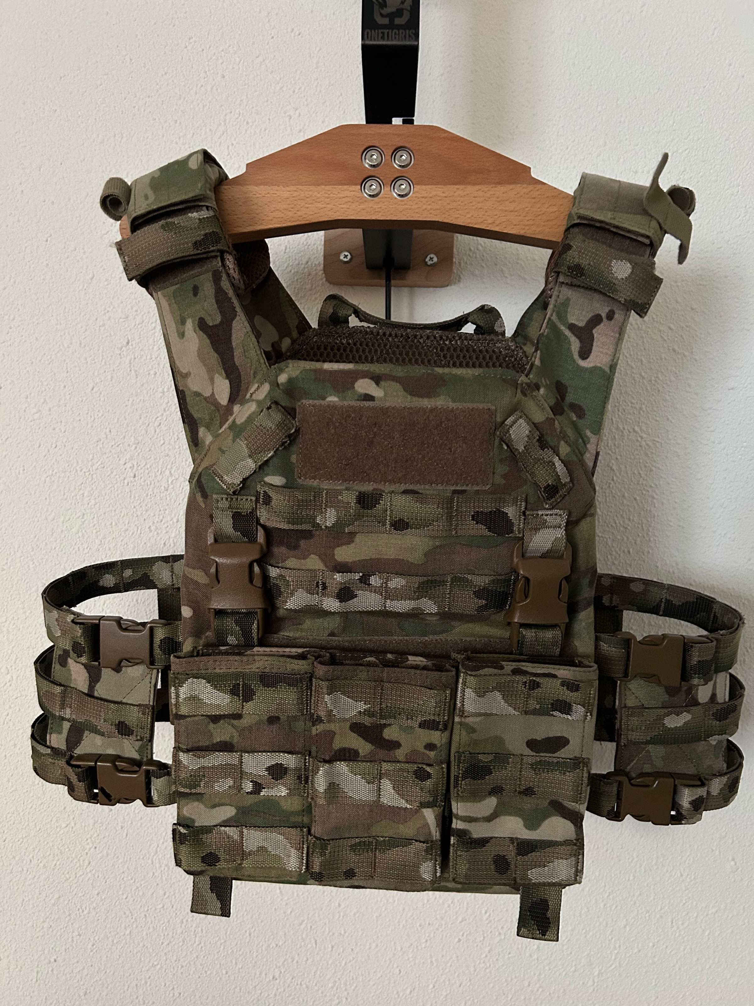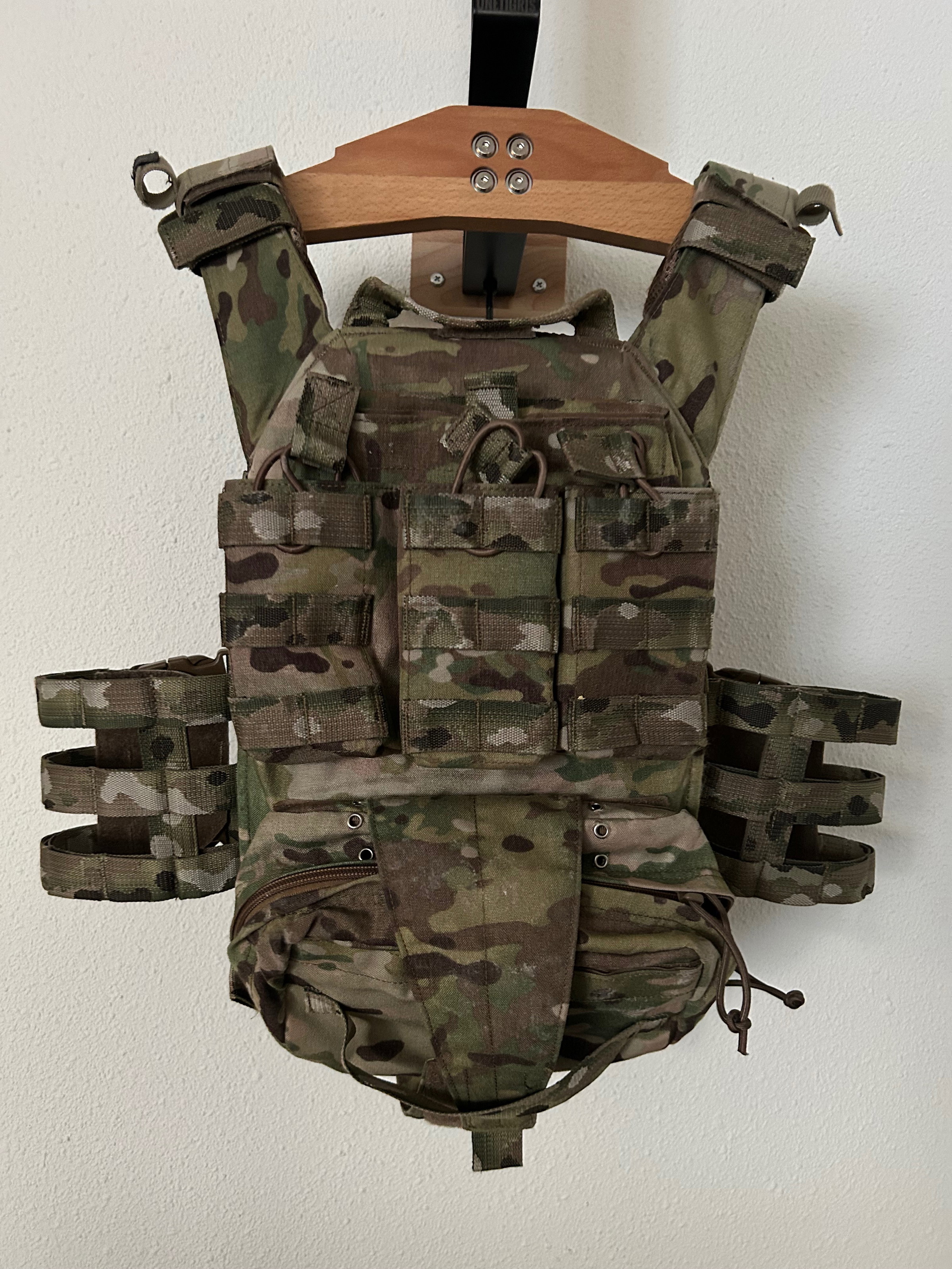 Het gaat om de Recon Plate carrier in Multicam (maat M) met een assaulters back panel met 3x m4 pouch aan de voorkant. De Plate carrier is gebruikt, maar wel in goed werkende staat.Β