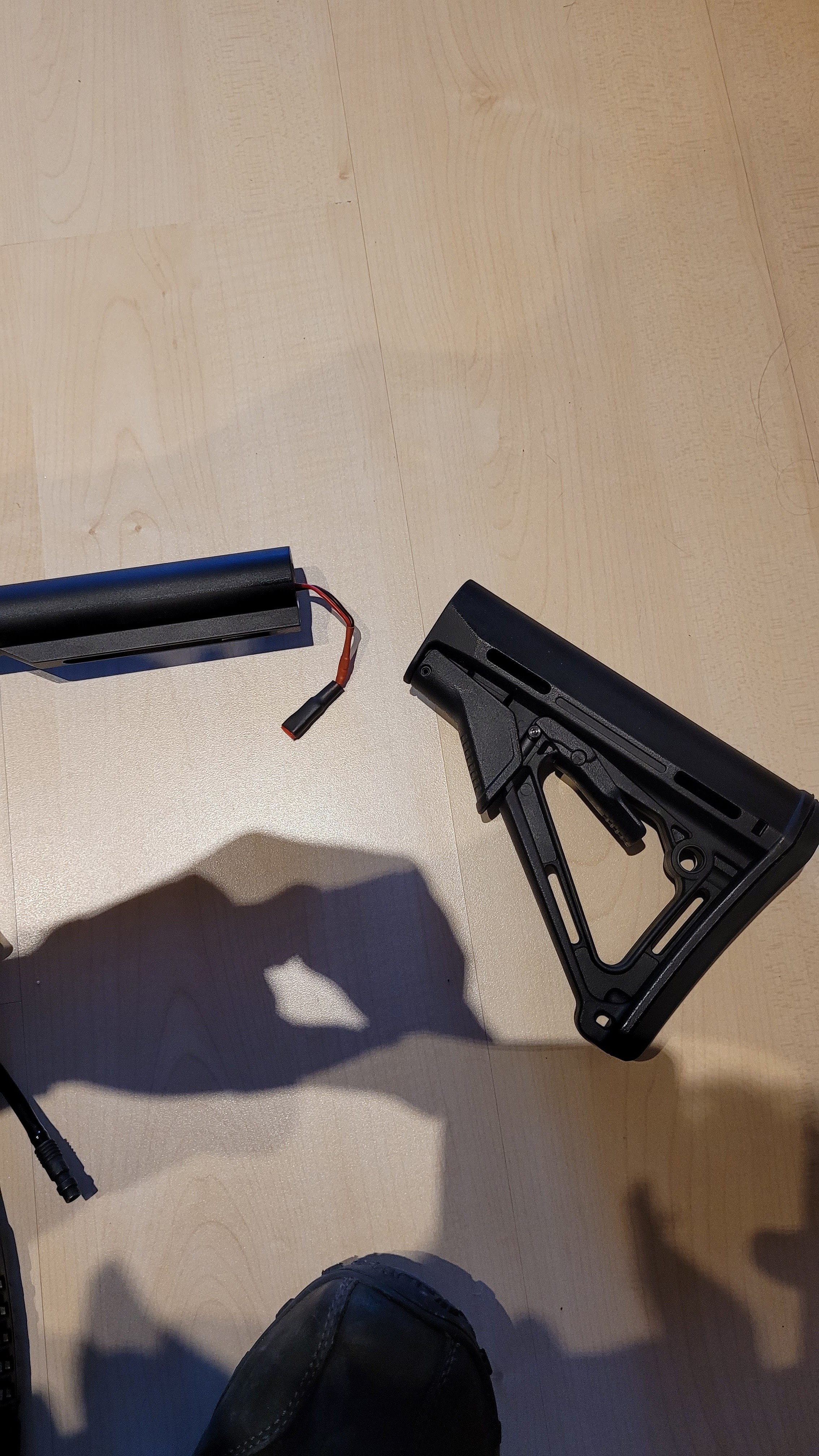 -buffer tube is aangepast samen met de batterij stekker bij Repairsoft, zodat je de body niet open hoeft te doen om de batterij te wisselen, enkel de stock er af schuiven.