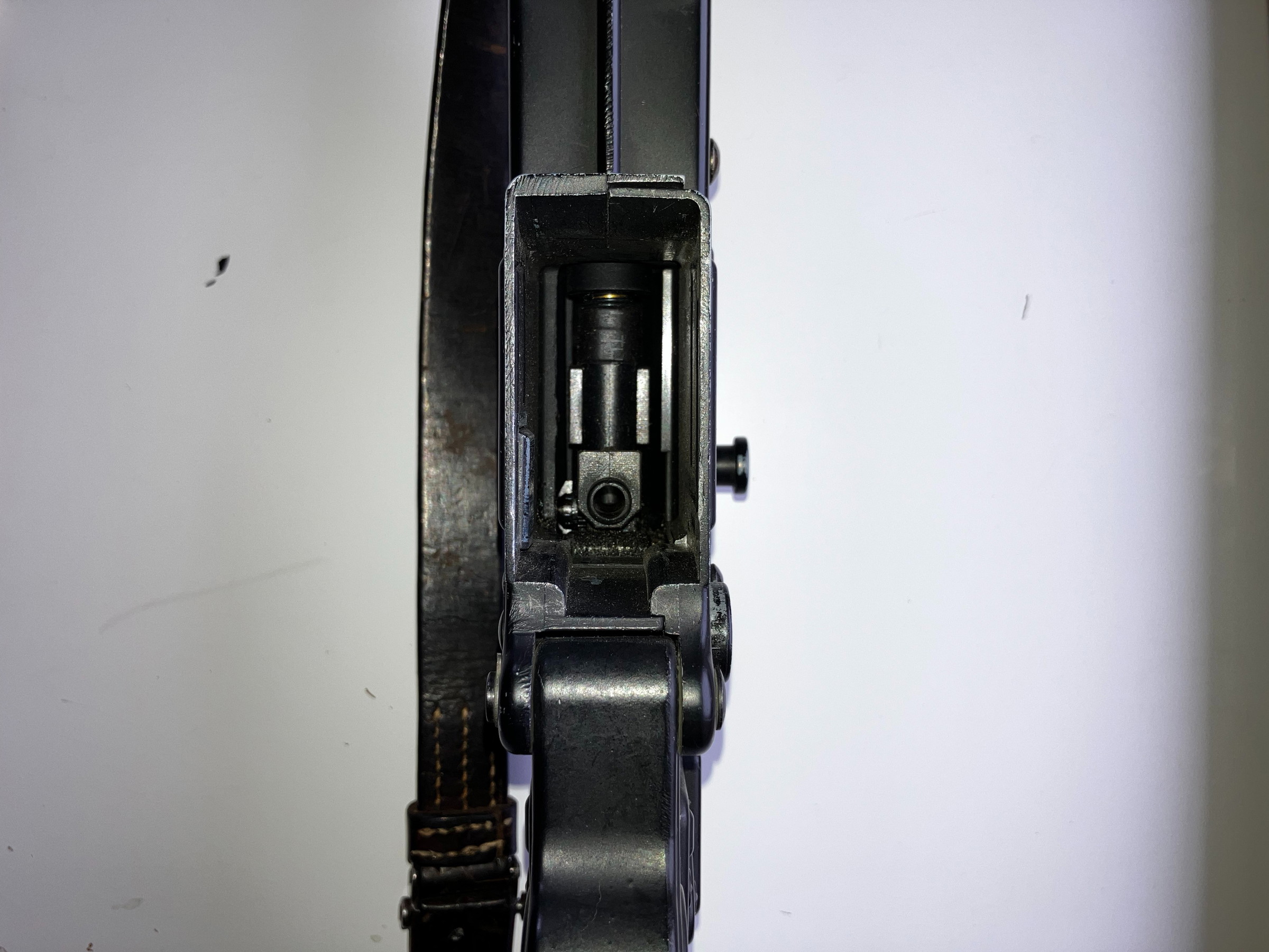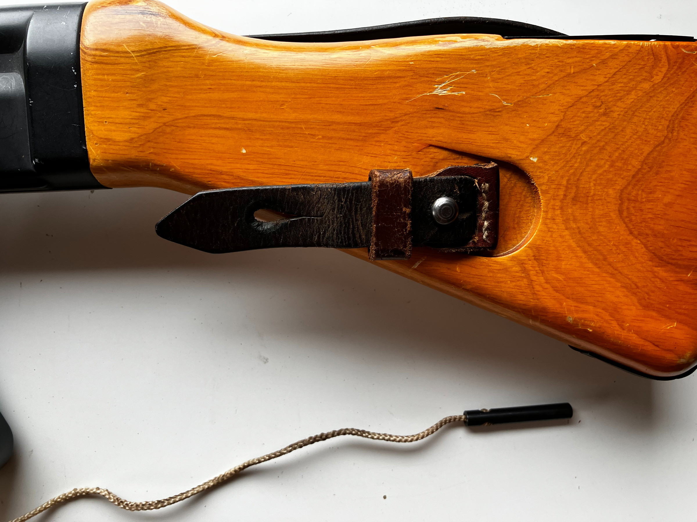 Included are 3 Metal Highcaps (one is kinda unreliable), an original WW2 leather shoulderstrap, a original WW2 cleaning chain (stored in the Buttstock) and a reproduction of a Paratrooper-gunpouch for transportation.