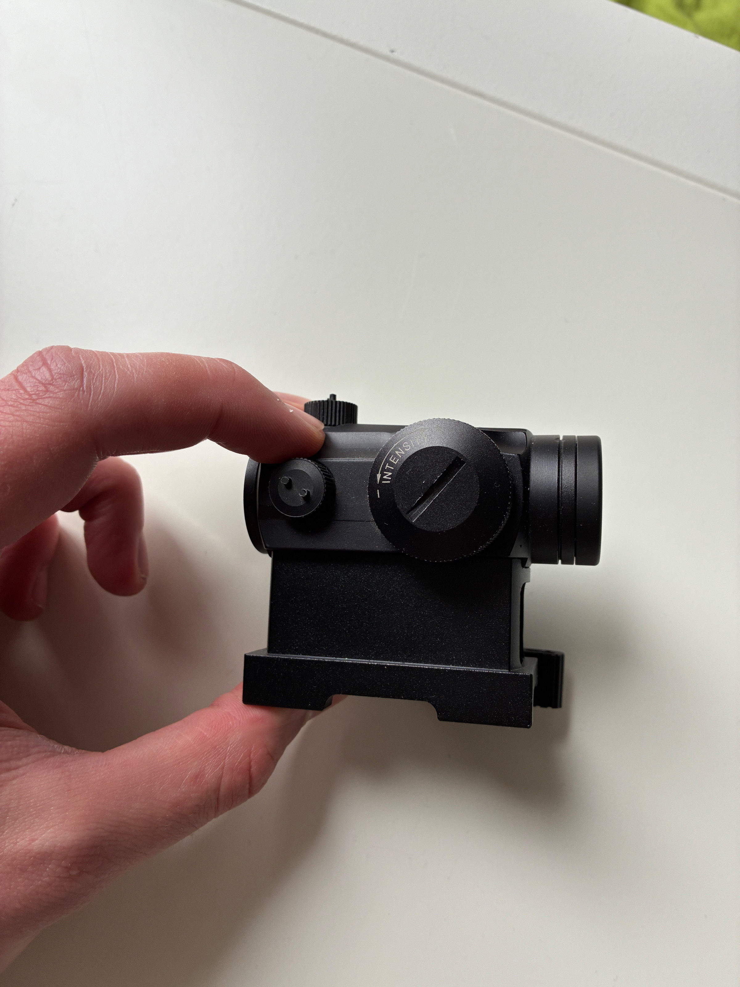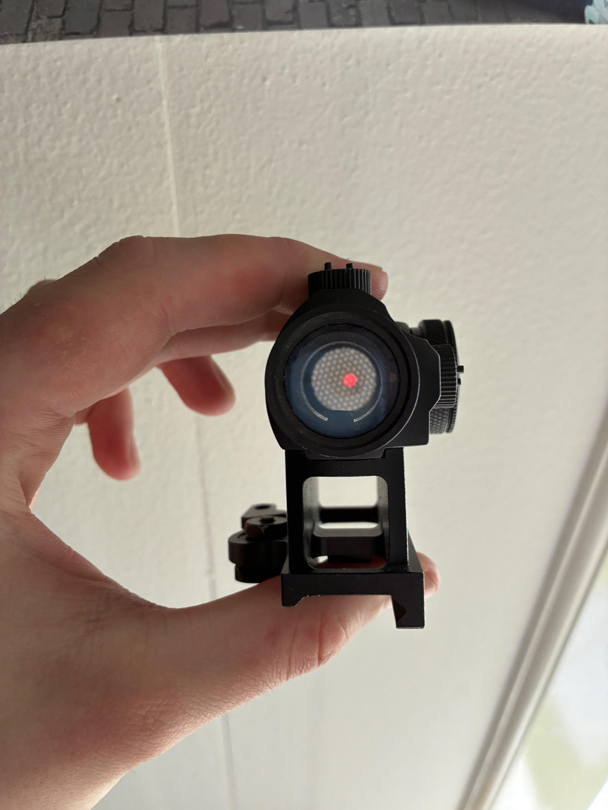 Gebruikte Aimo red dot maar werkt nog steeds perfect en alle standen werken nog en is niks mis mee
