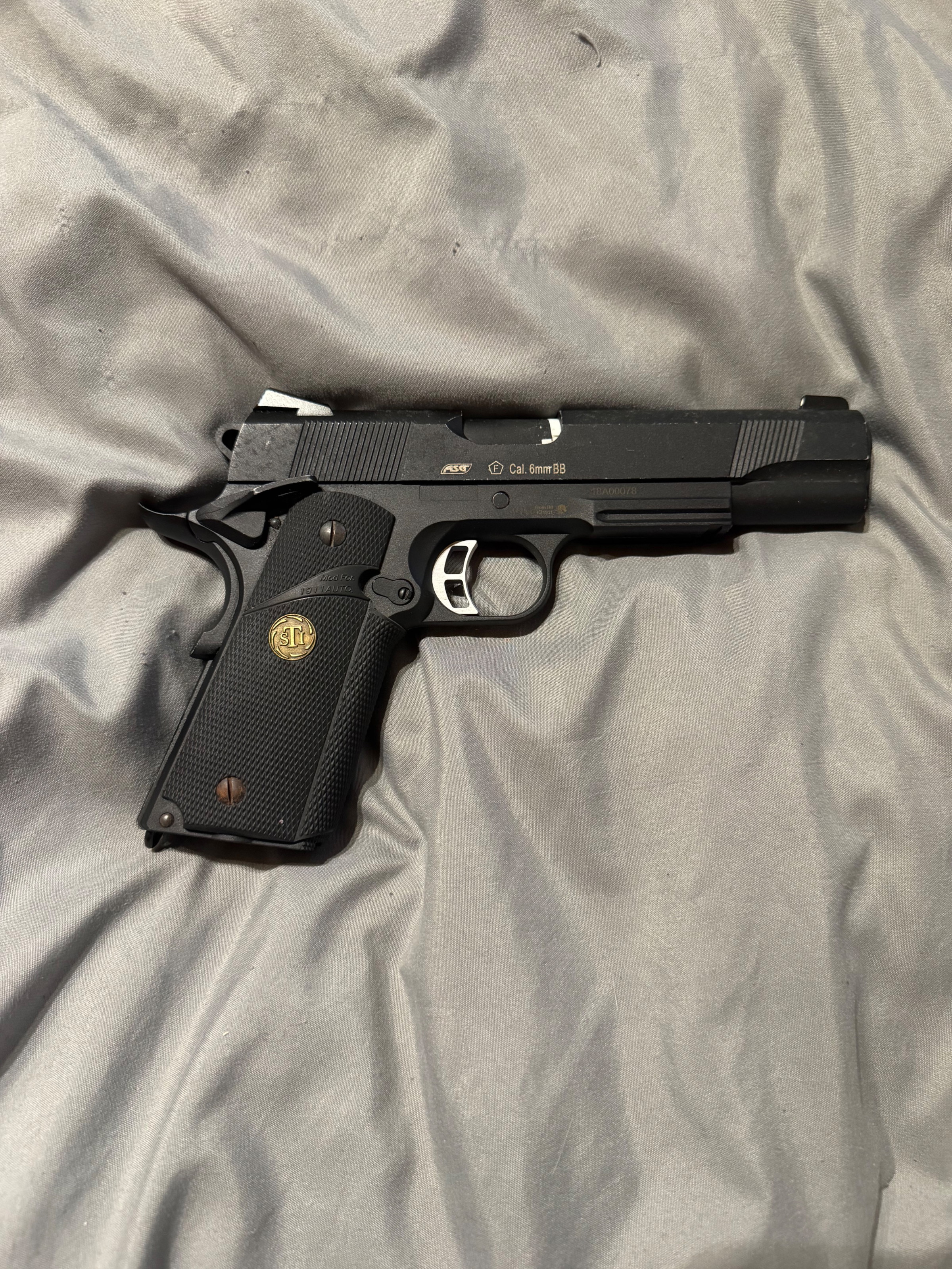 Verkaufe meine Gas Blow Back Airsoft Pistole im STI TAC MASTER Style. Die Waffe bietet durch das GBB-System ein realistisches Schussgefühl und funktioniert zuverlässig.