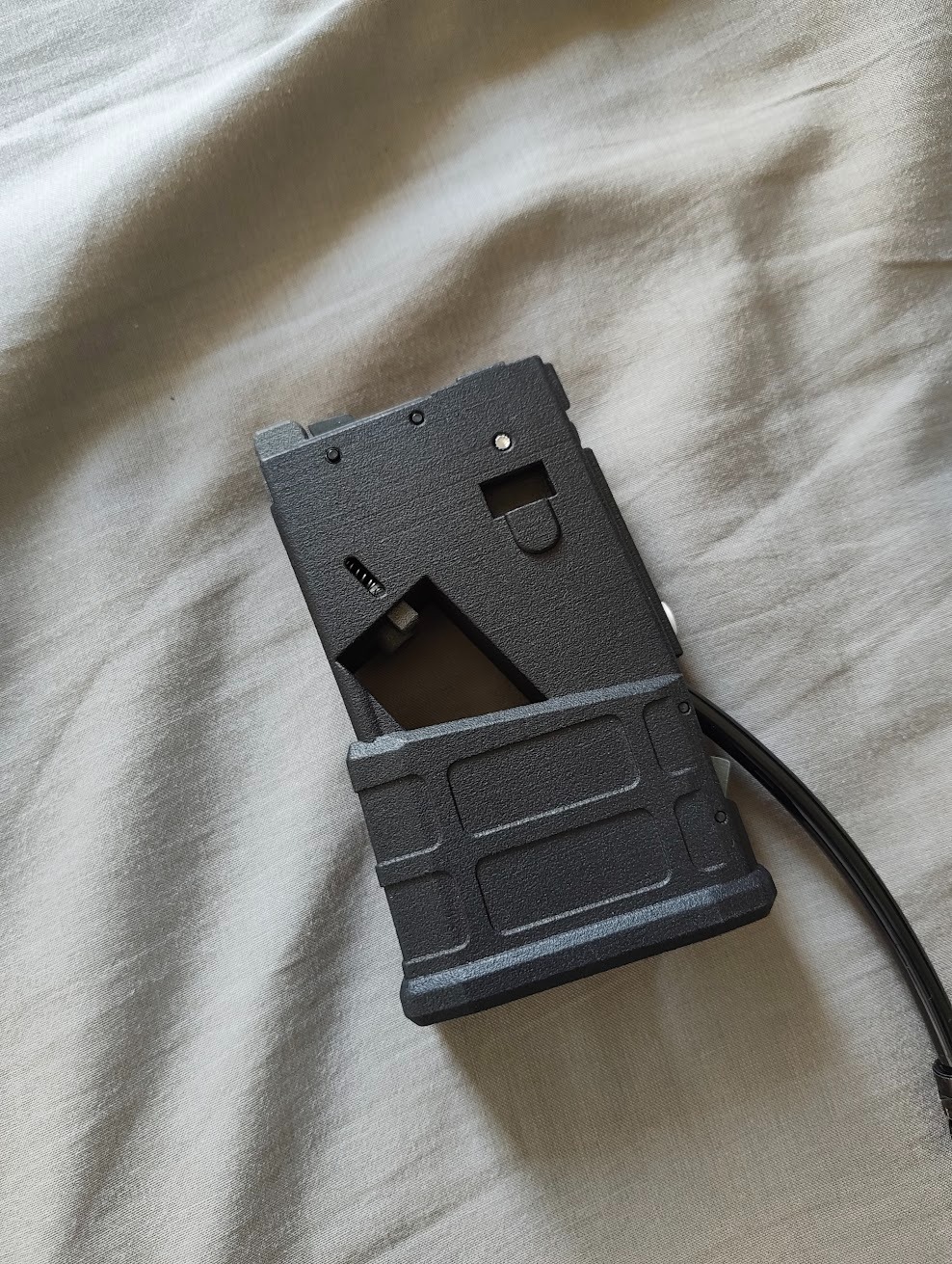 Ziet eruit als een kort M4-magazijn met kleinere capaciteit, in DMR-stijl