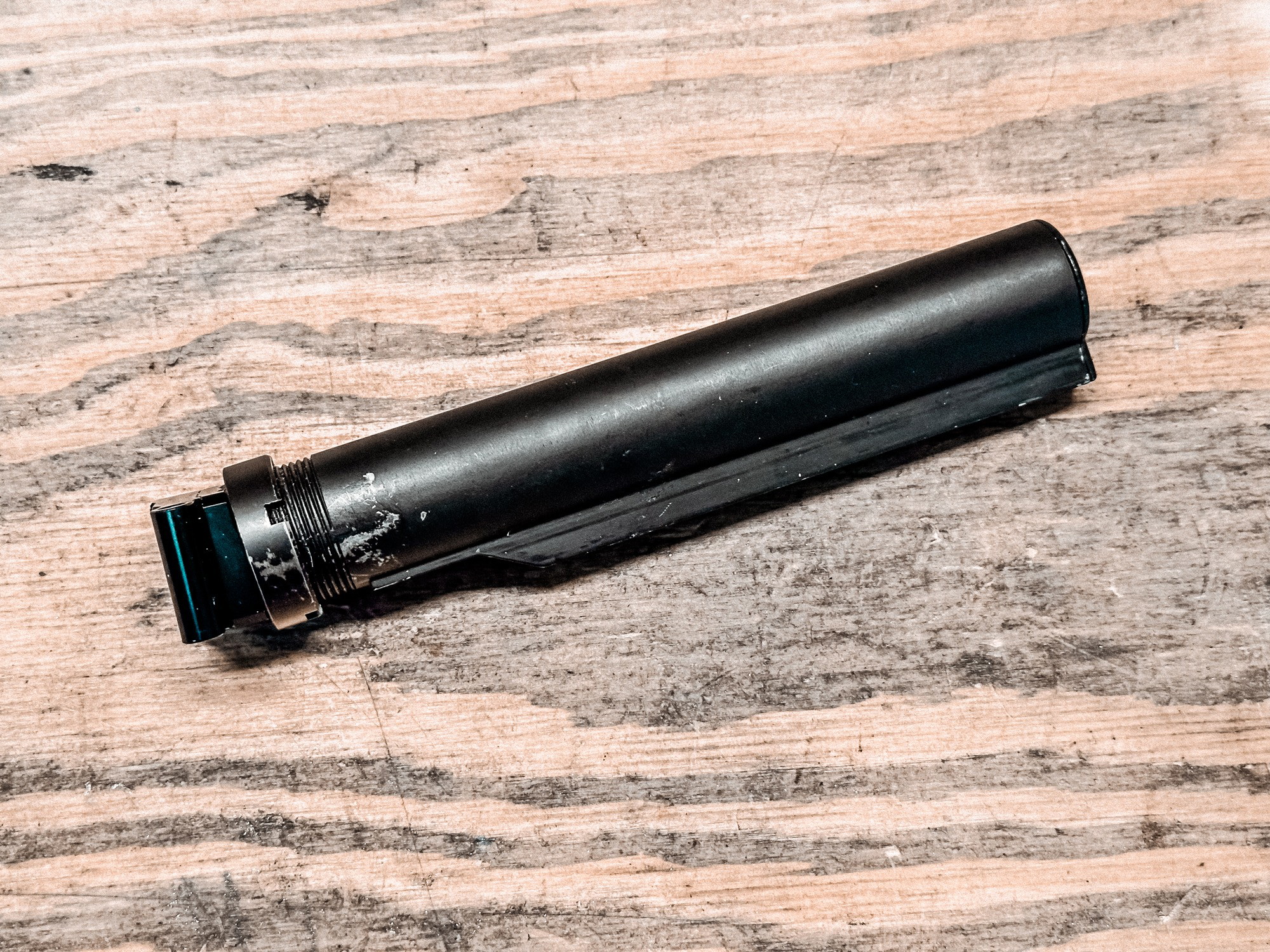 Onbekend merk stocktube voor op een AK met folding stock.