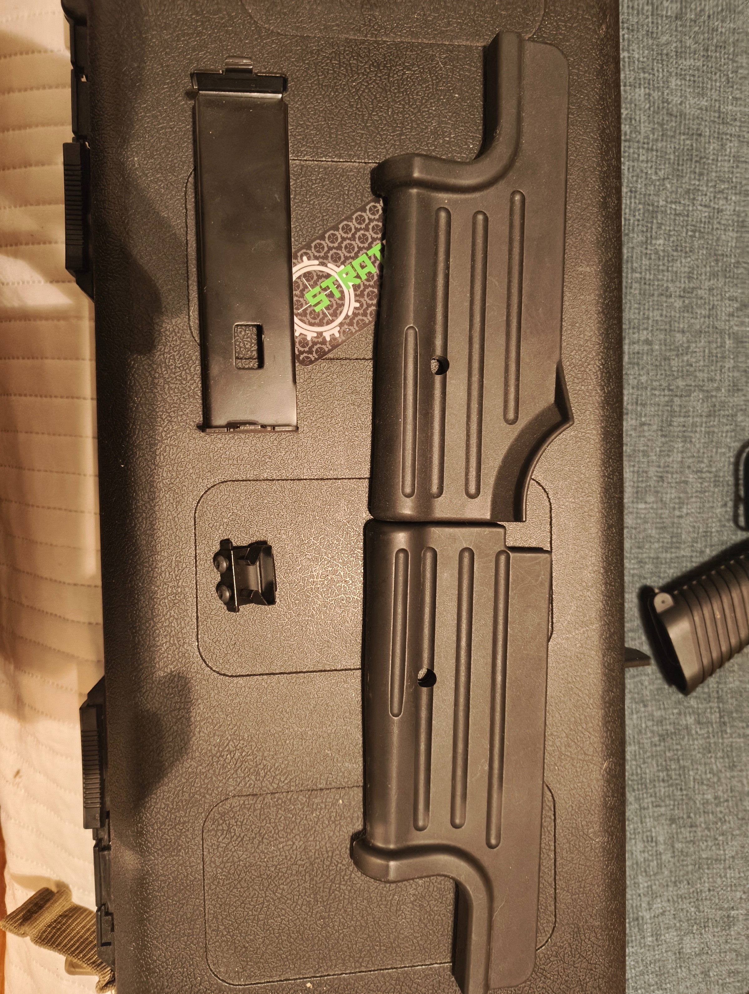 Ik heb deze al een tijdje liggen, maar nooit een skirm mee gespeeld. Er zit een 3D printed bottom rail op zodat je grips en lampen erop kan monteren. De originele handguard krijg je er ook bij als je die liever erop zet. Daarnaast zit de bipod er niet meer op, maar deze krijg je ook mee voor als je deze er weer op wilt zetten.
