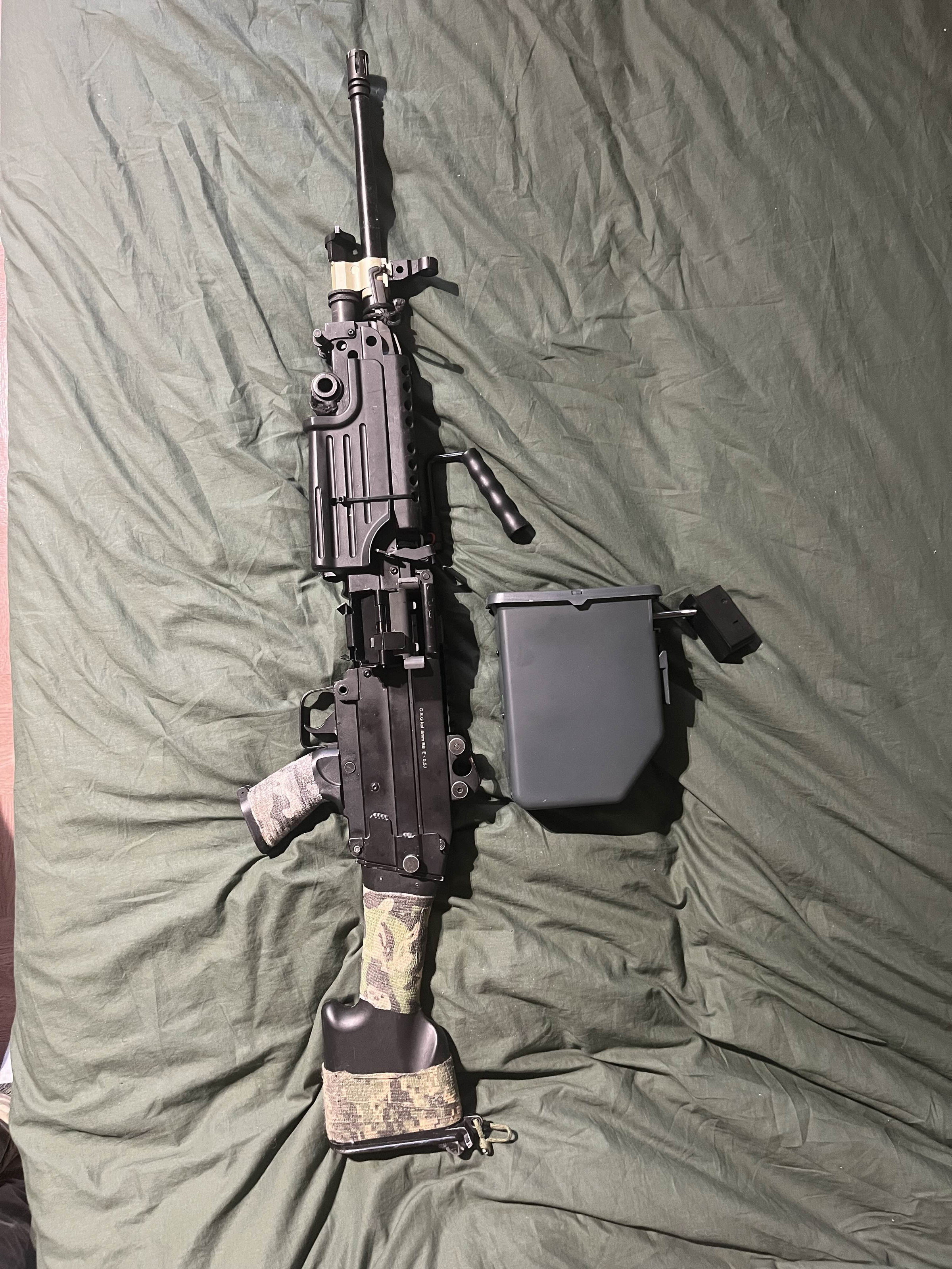 hierbij verkoop ik een M249 die volledig stock is. Schiet goed. Komt met een magazijn van 2500bb's en een batterij.