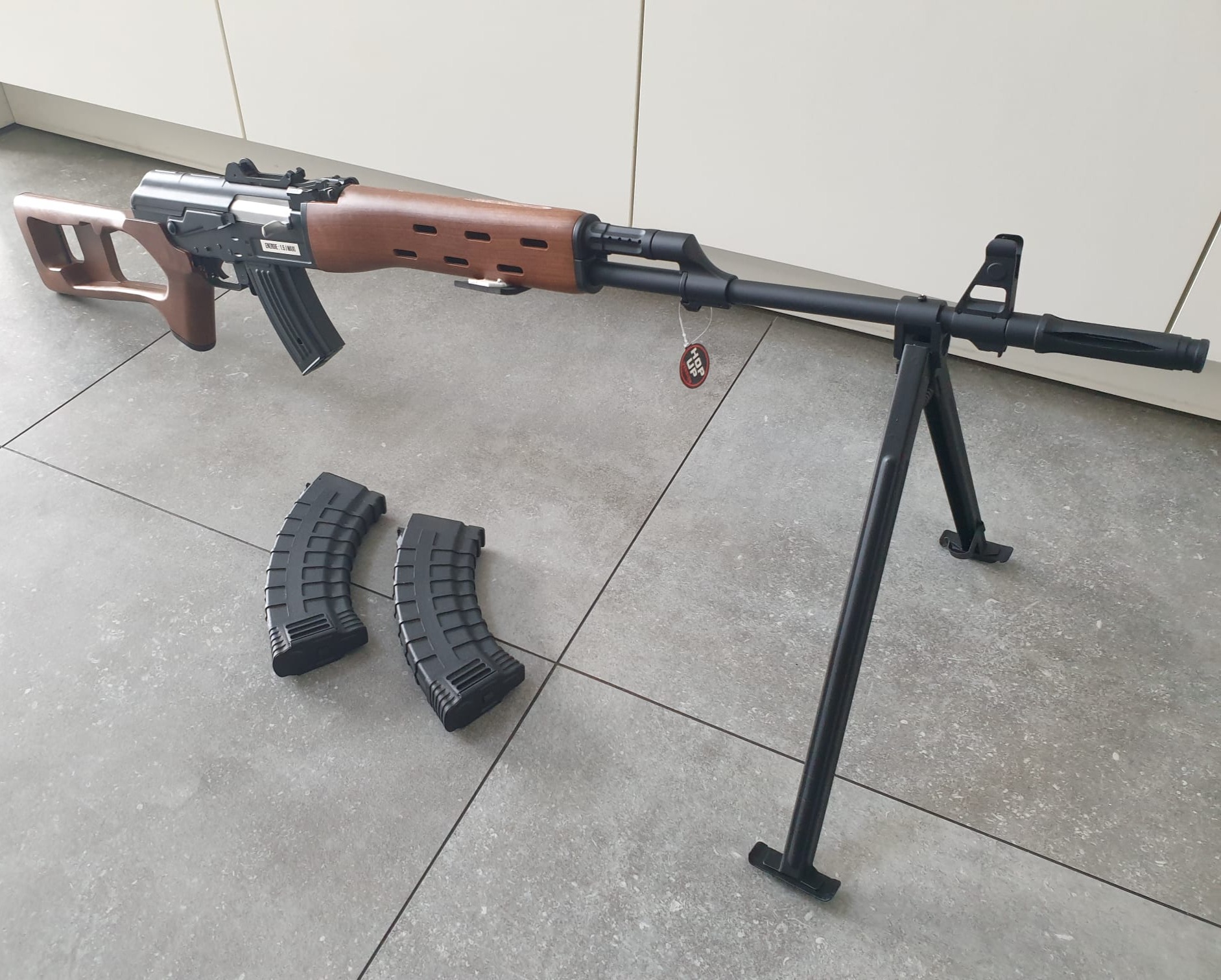 Maak kennis met de AK-SVD AEG - Zwart & Hout , het perfecte airsoftgeweer voor iedereen die zijn spel naar een hoger niveau wil tillen. Met zijn strakke zwarte afwerking en realistische houten accenten zal dit geweer zeker de aandacht trekken op het slagveld. Maar het gaat niet alleen om het uiterlijk - de AK-SVD AEG is ook een machine met hoge prestaties. Hij is voorzien van een volledig metalen gearbox en een krachtige motor, waardoor snelvuur en nauwkeurig schieten mogelijk zijn. Het verstelbare hop-up systeem zorgt ervoor dat je schoten recht en nauwkeurig aankomen, terwijl het magazijn met een hoge capaciteit van 600 kogels betekent dat je minder vaak hoeft te herladen. Of je nu een doorgewinterde airsoftveteraan bent of net begint, de AK-SVD AEG - Zwart & Hout is  de perfecte keuze voor je volgende potje. Dus waar wacht je nog op?