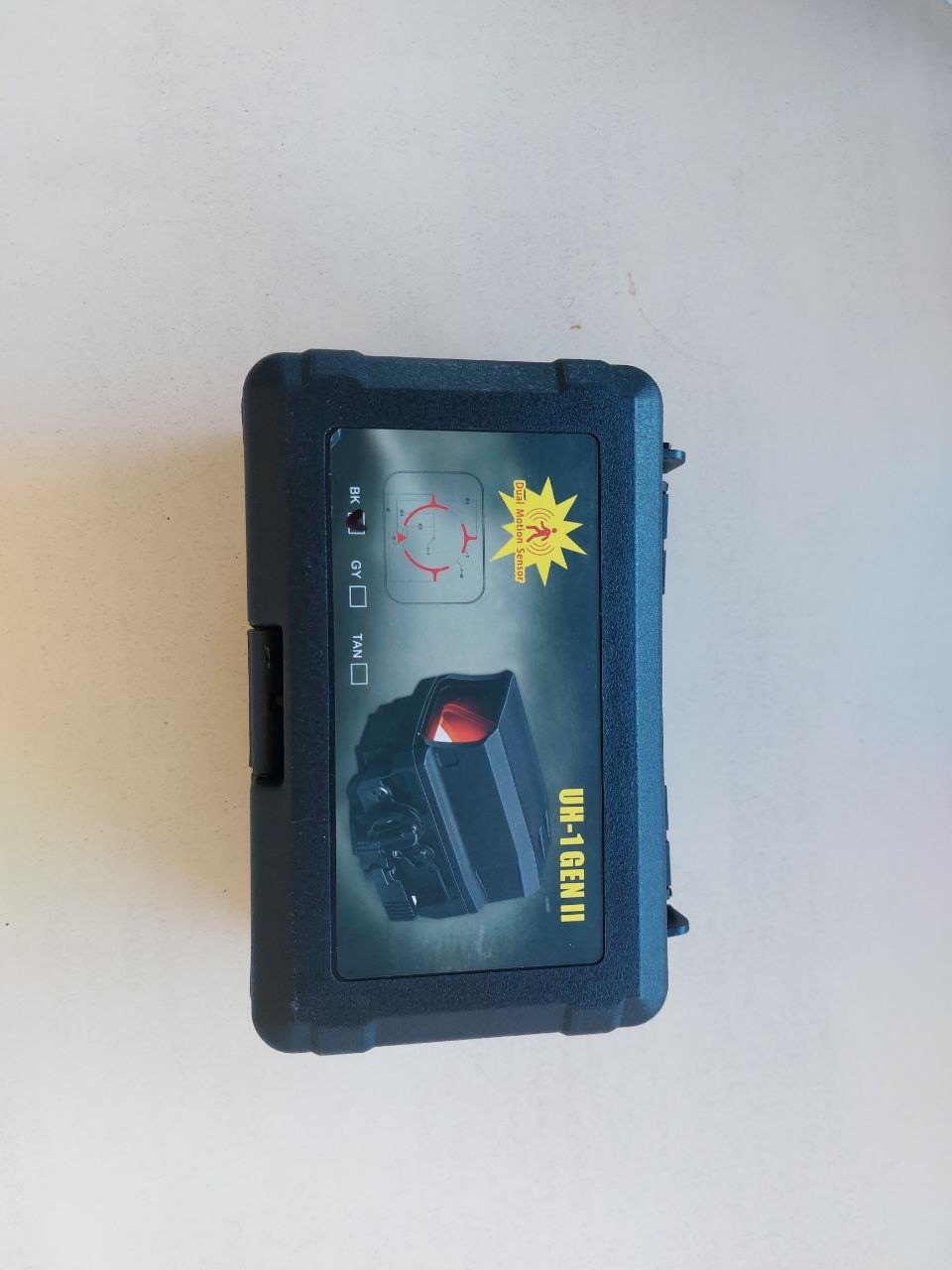 The benefit of this scope is that intensity level of red dot could be adjustable to maximum brightness and clearly visible in the sunny day. The collimator sight is in perfect condition. Never used before. The sight is parallax free ( red dot not moving when you move head) has a quick release mount. The optics has 10 level0 brightness adjustment.