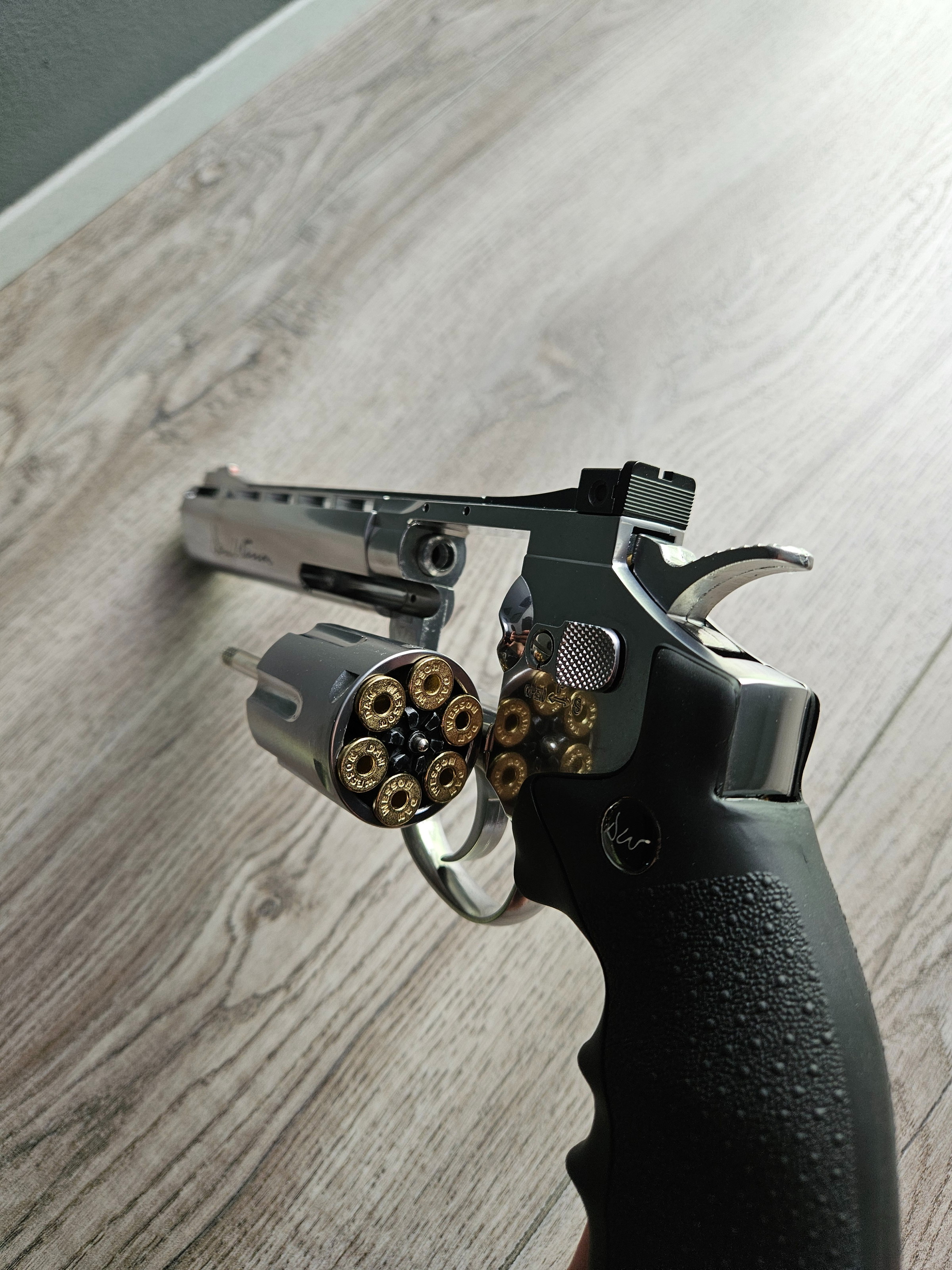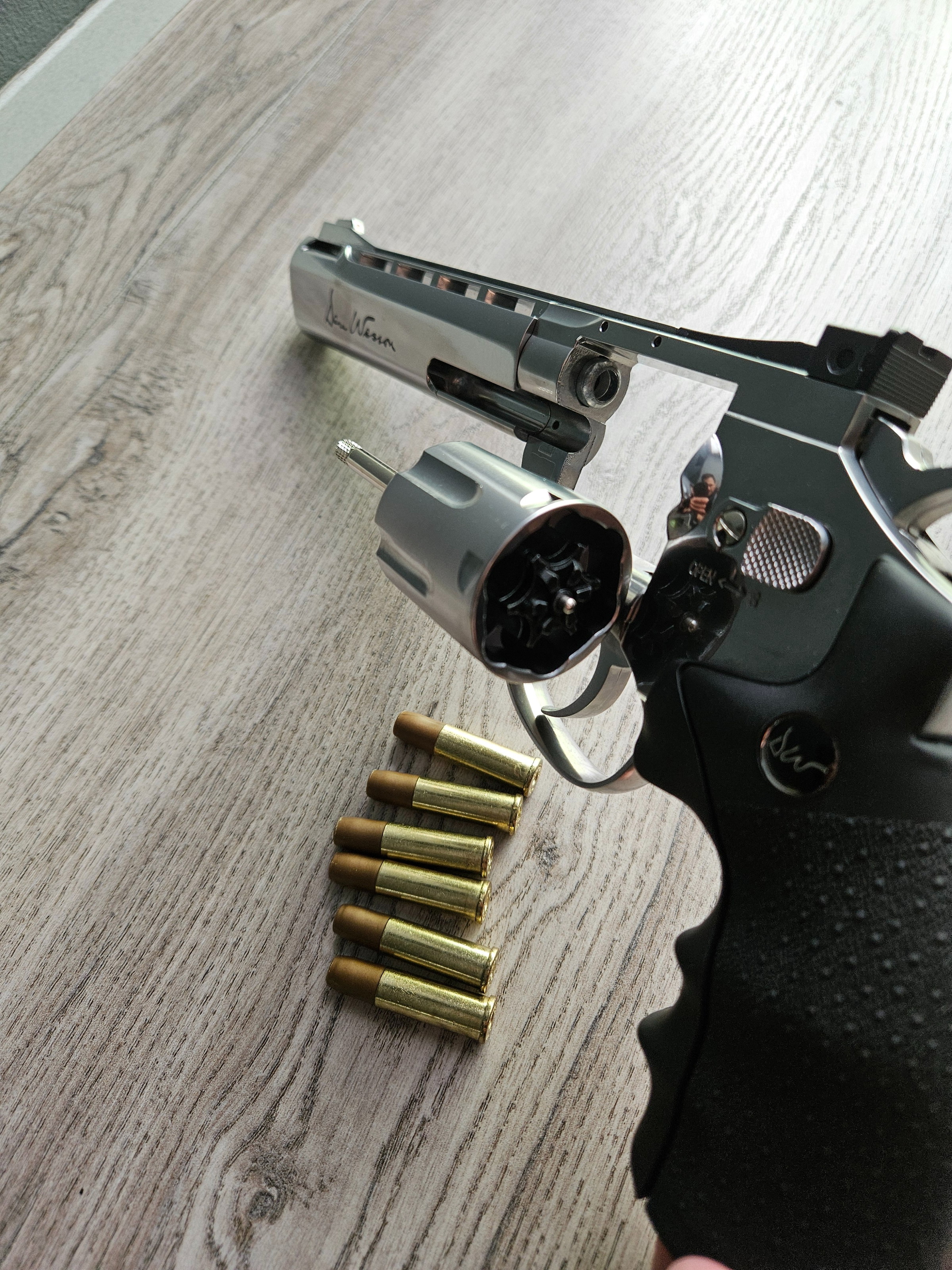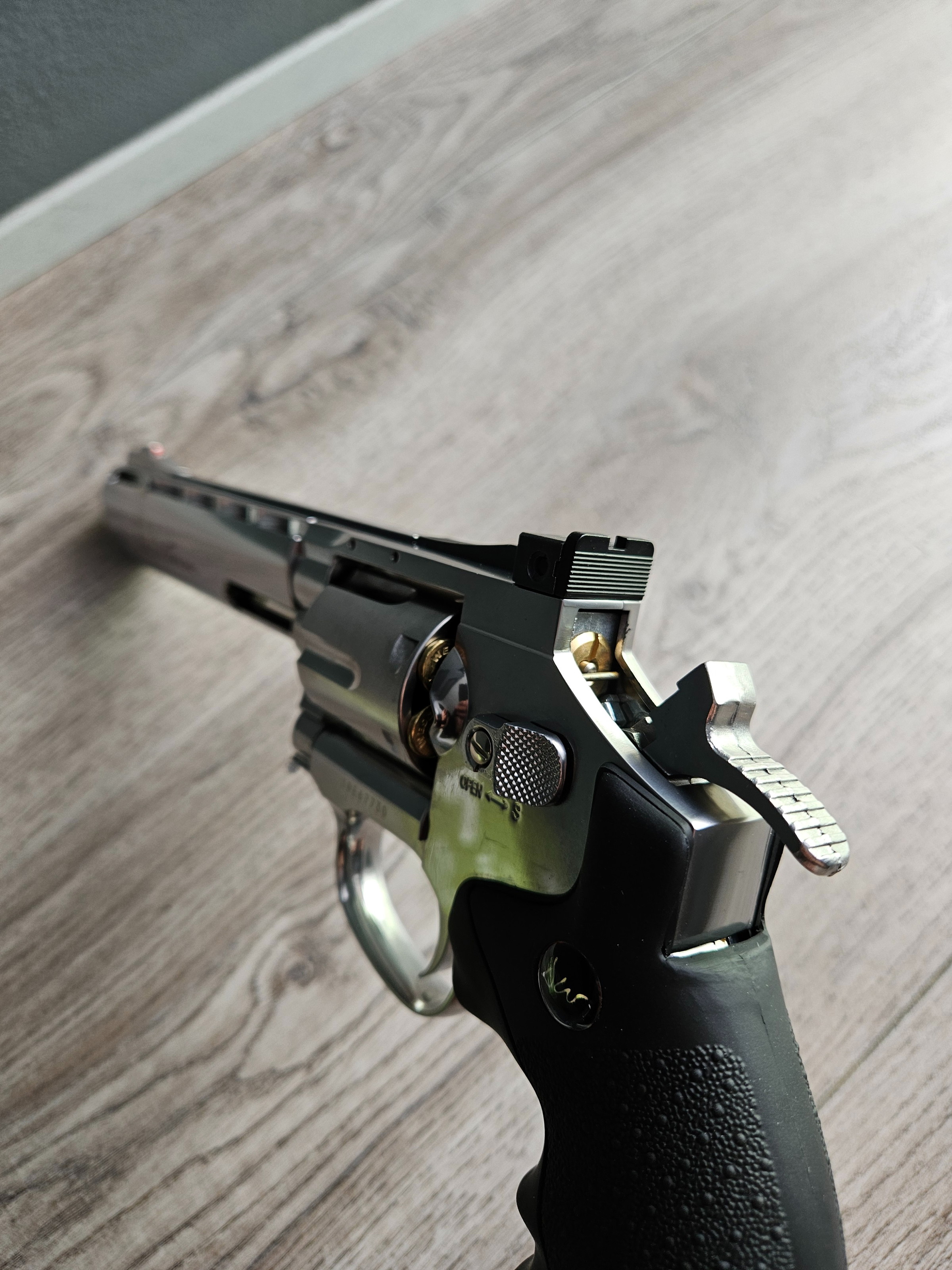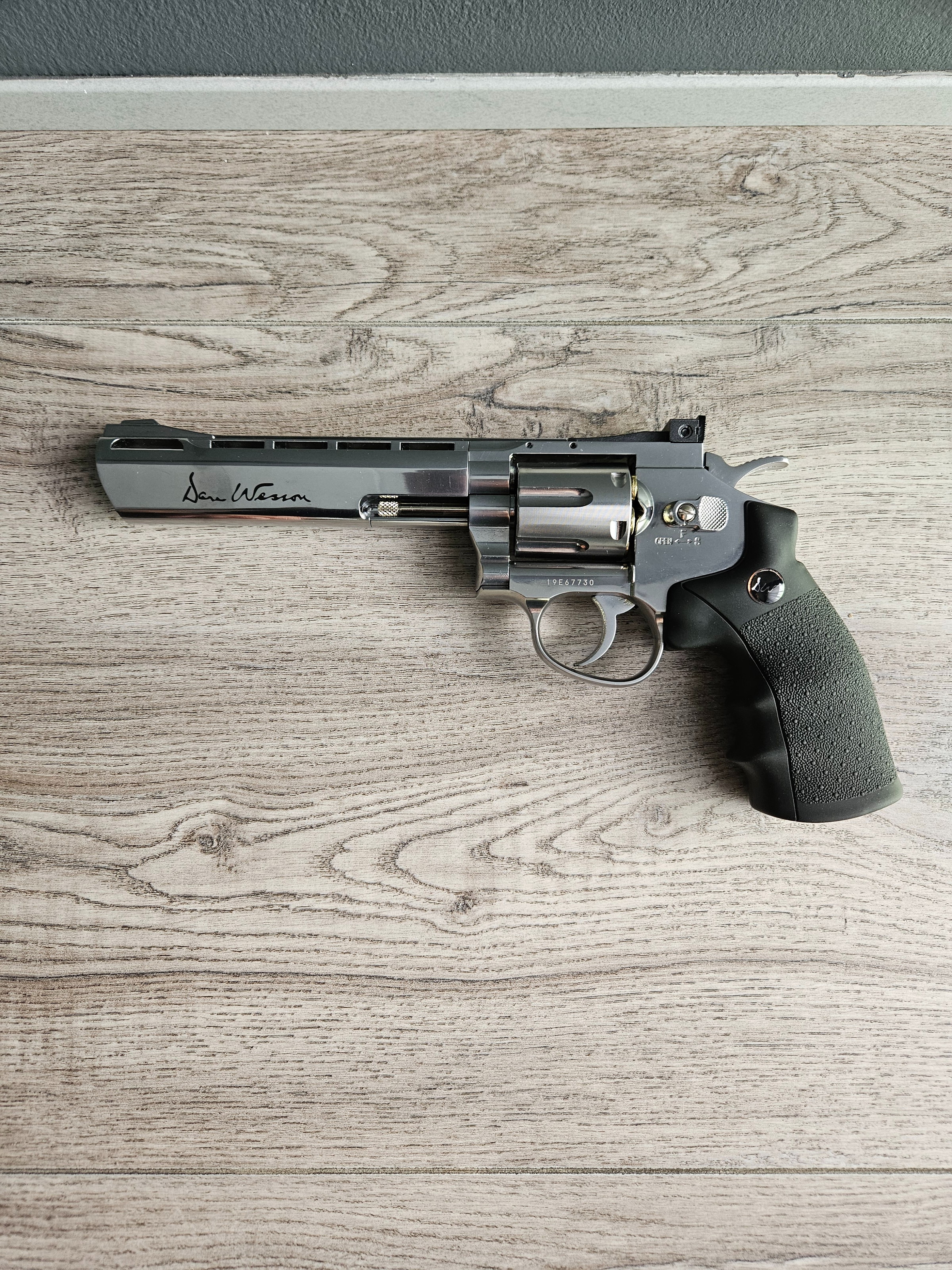 Wegens beëindiging van de hobby verkoop ik deze mooie Dan Wesson 6" revolver van ASG.