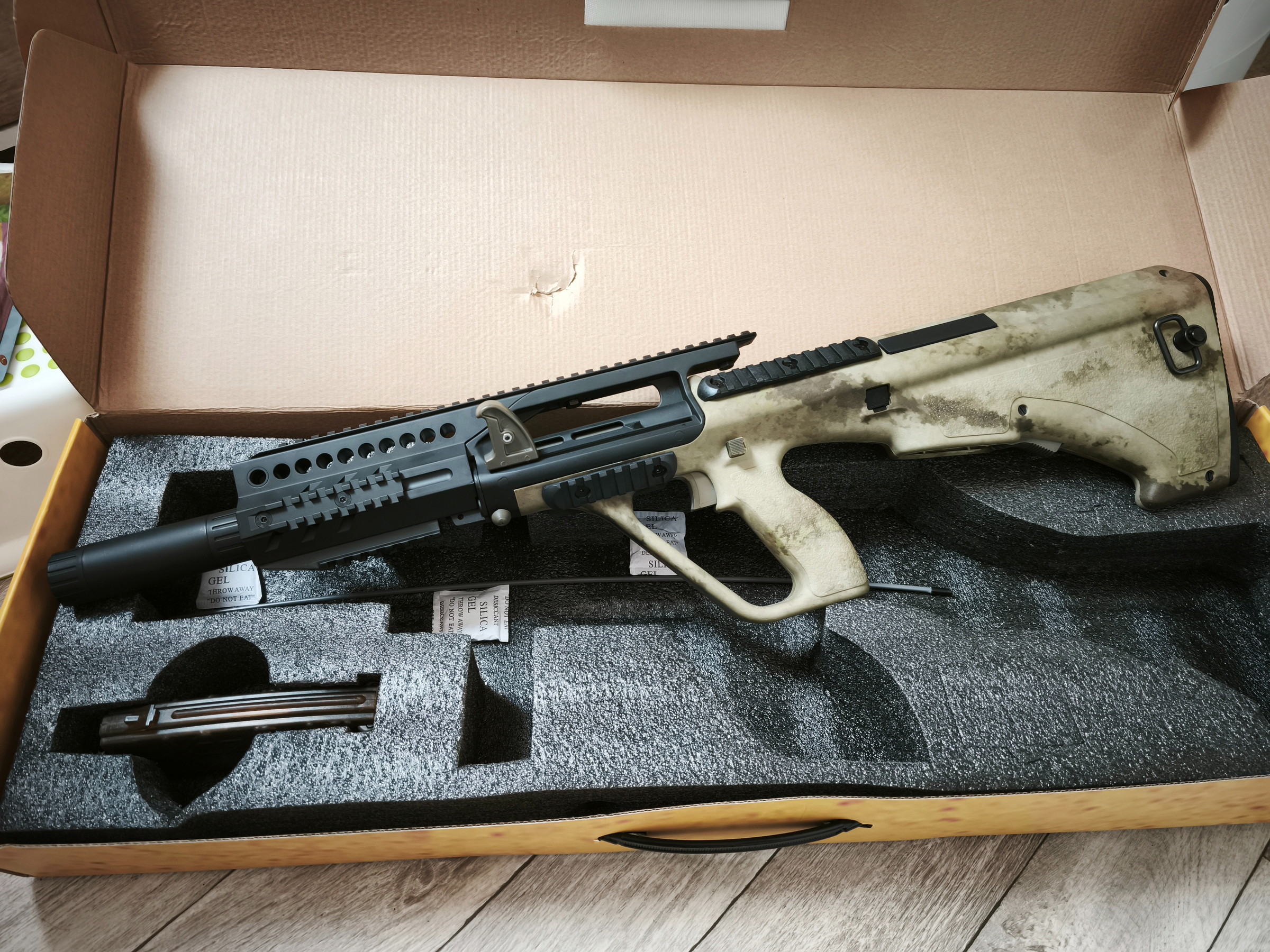 Bonjour, je vend mon AUG A2 AEG - Water Transfer gagné récemment mais c'est une réplique que je possède déjà , elle est donc neuve j'ai juste ouvert le carton pour faire les photos.