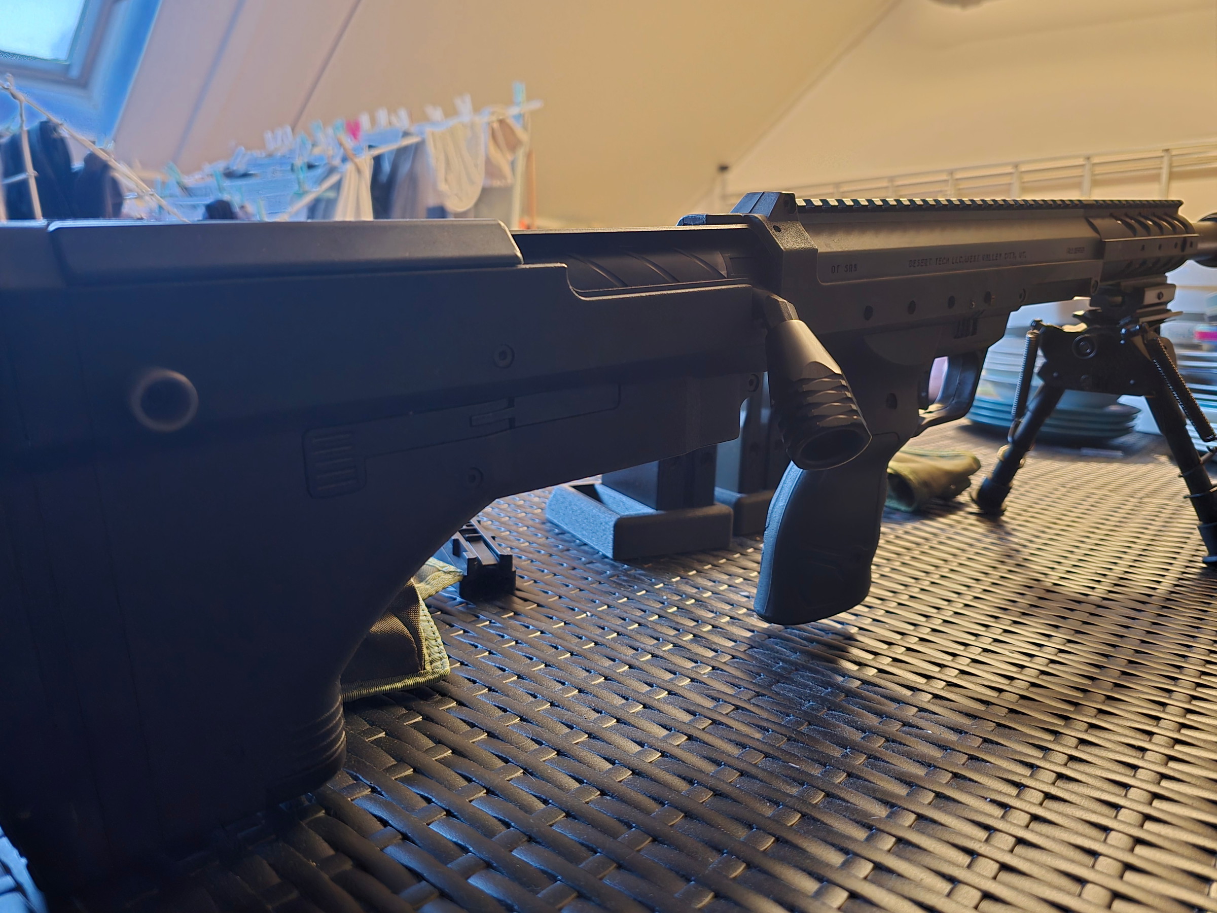 Ik doe de SRS weg, omdat ik hem eigenlijk eigenlijk niet heel comfortabel vind om mee te schieten. Ik ben meer een dan van een stock die lager is dan de rest van de body.