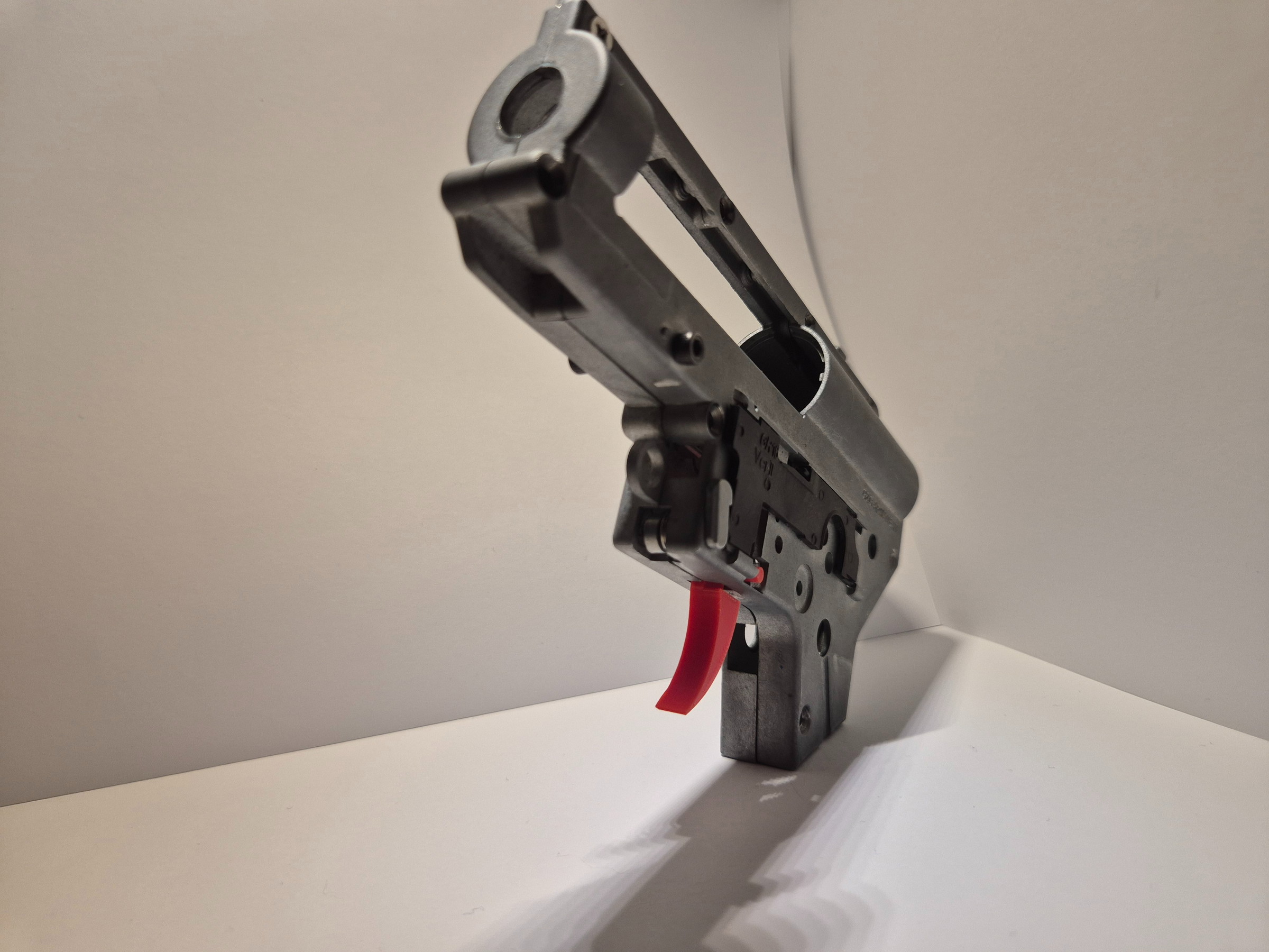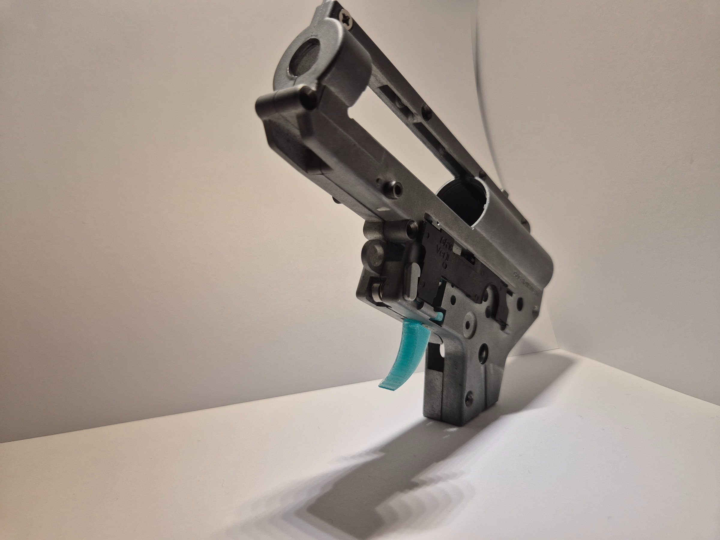 Classic trigger by Hostruk for asg M4/Ar-15 replica. Solid, holds well. Made of PETG (polyethylene terephthalate glycol). The trigger is intended for AEG, HPA, spring-powered and gas replicas.