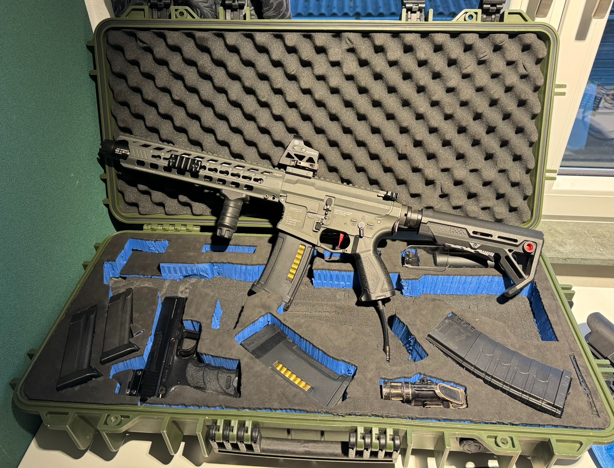 Het wapen is een omgebouwde AEG naar HPA en hier mee zit er een Wolverine FCU waarmee je de lucht en FPS snelheid instel,
